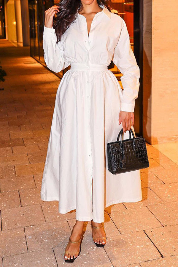 We're glad you've clicked on our new single breasted dress as we're really into its simple vibes! The shirt collar and long sleeve cut make this a great choice for any stylish girl.
