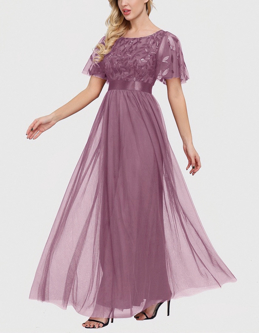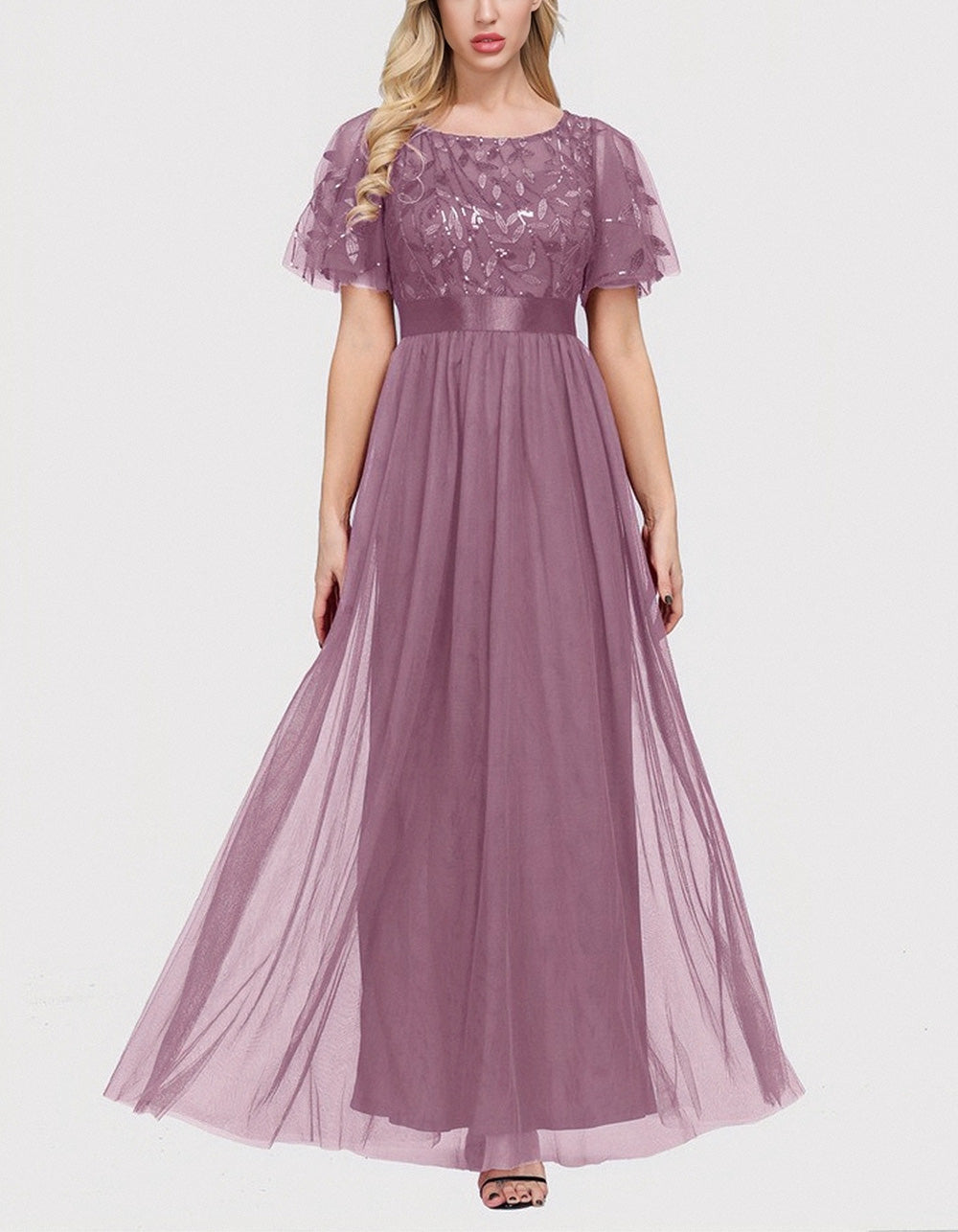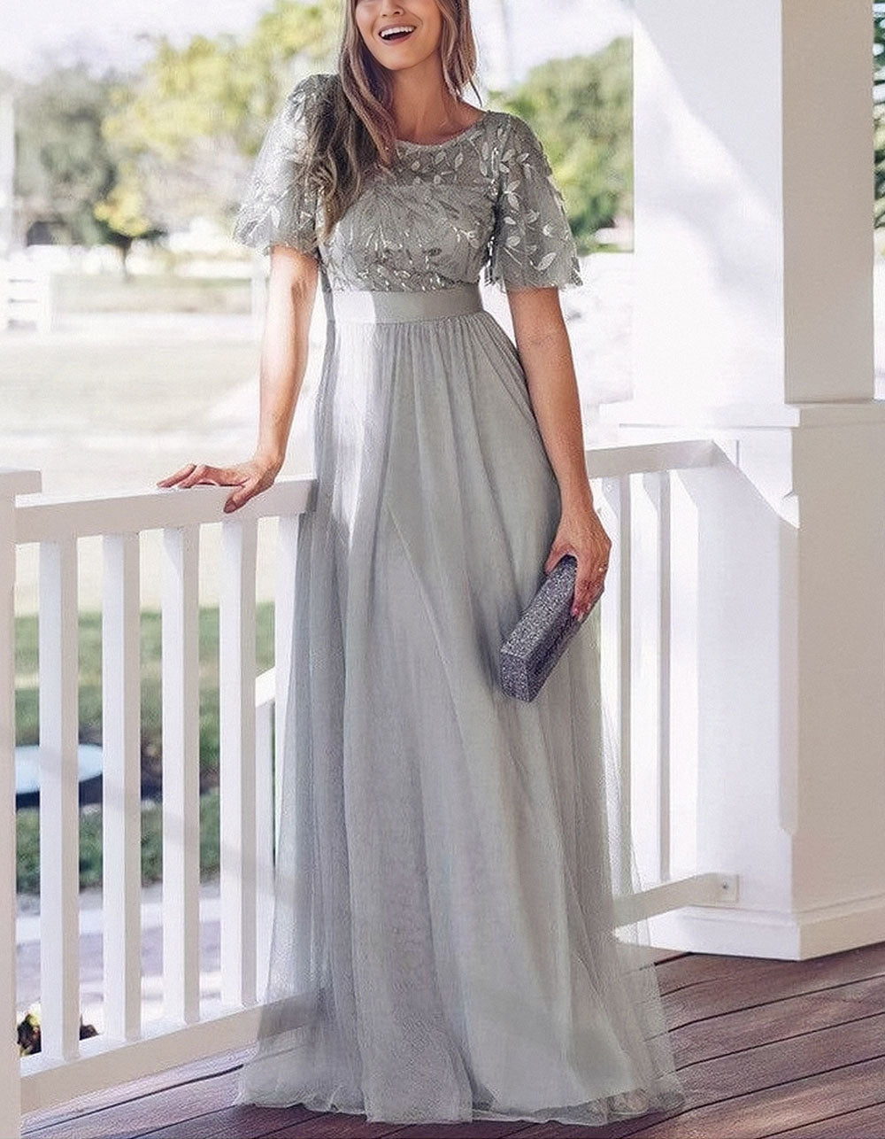 This Solid-color High Waist Round Neck Party Mesh Long Evening A-Line Dress is perfect for your special occasions. Made of lightweight and breathable Polyester. it features a flattering high waistline. ruffle hem. and mesh stitching for an elegant party-ready look. Choose from 4 color options.