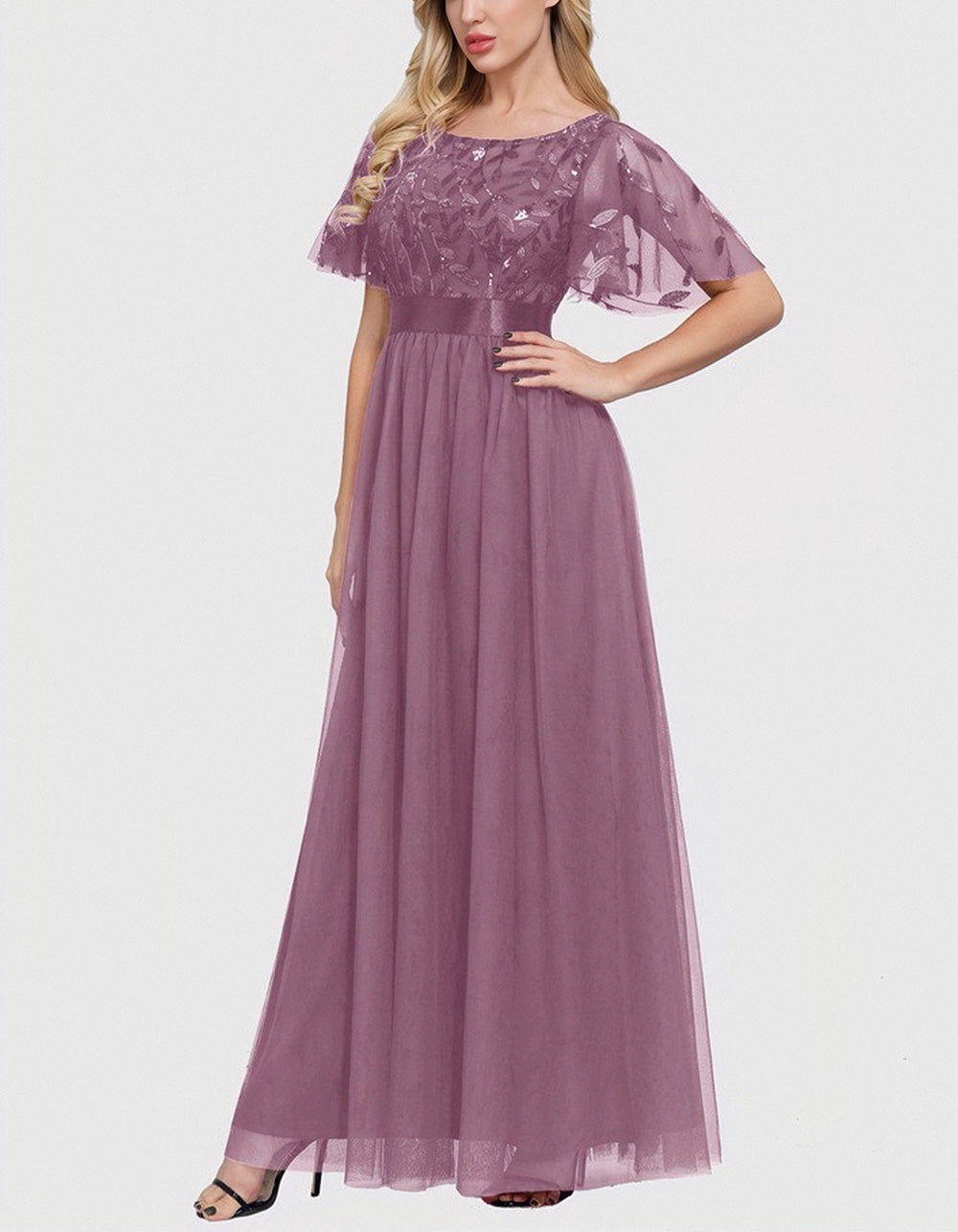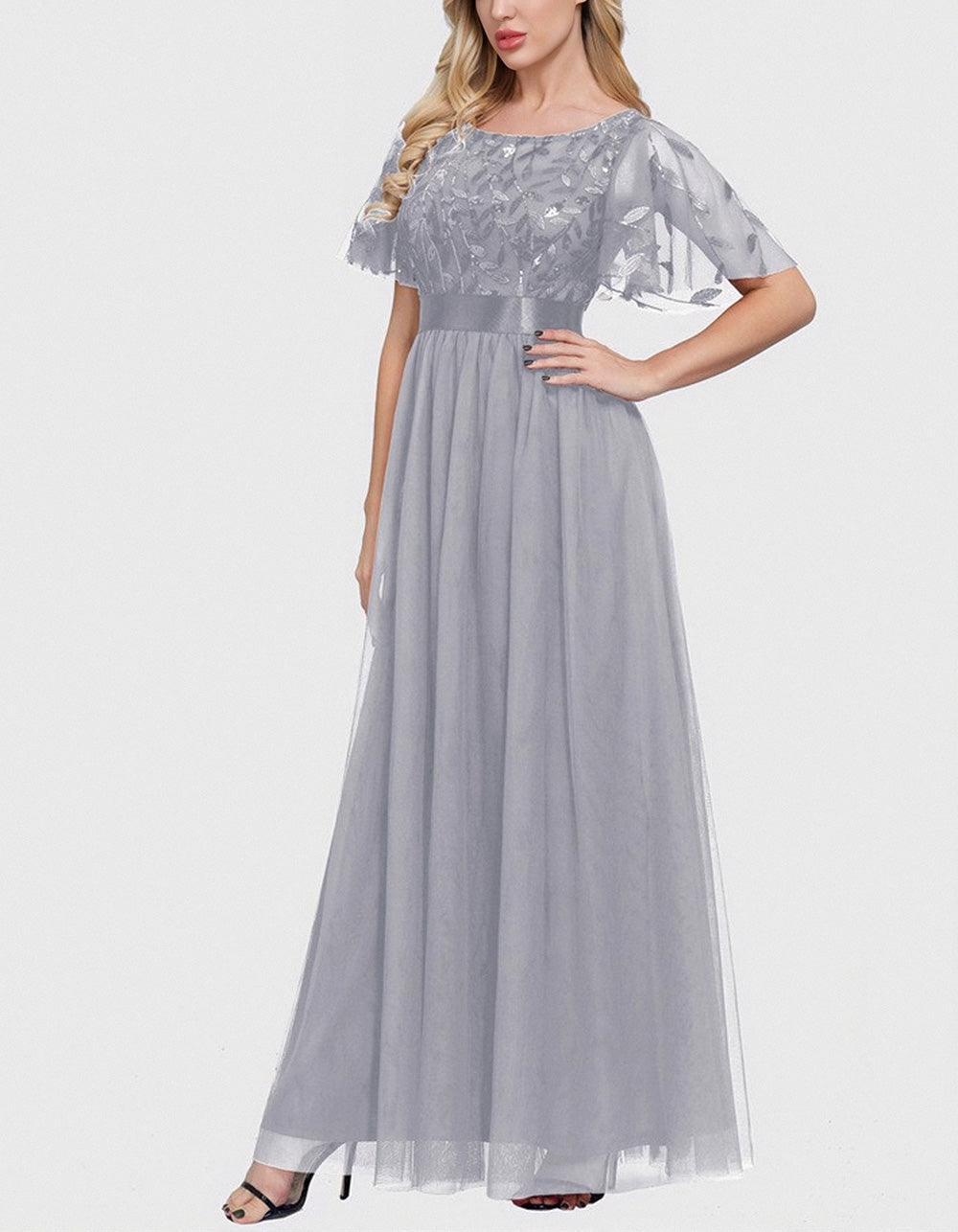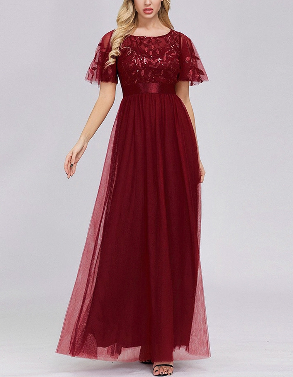 This Solid-color High Waist Round Neck Party Mesh Long Evening A-Line Dress is perfect for your special occasions. Made of lightweight and breathable Polyester. it features a flattering high waistline. ruffle hem. and mesh stitching for an elegant party-ready look. Choose from 4 color options.