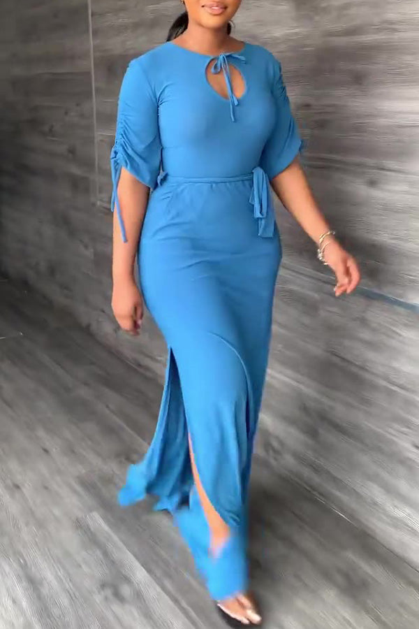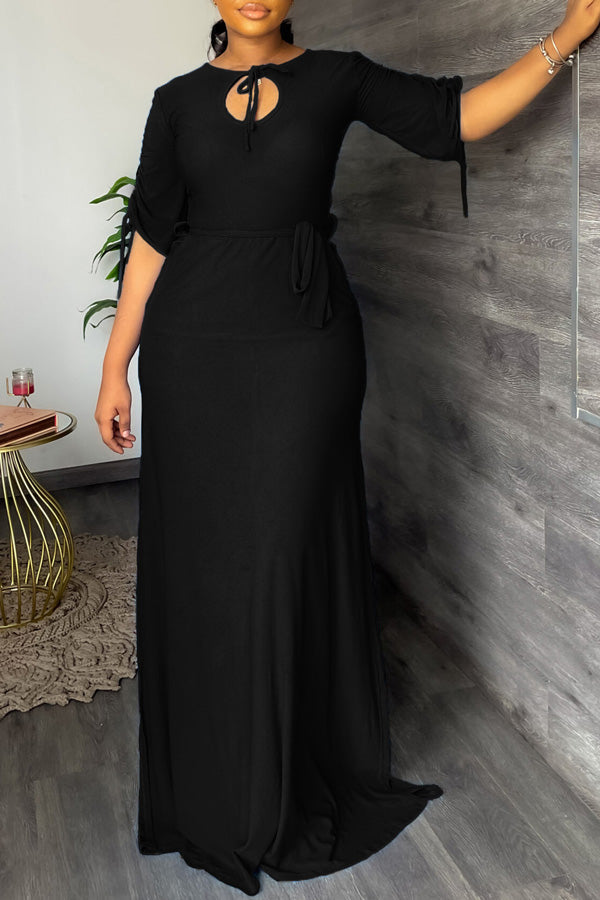 We're glad you've clicked on our new fishtail dress as we're really into its elegant vibes! The round neck and half sleeve cut make this a great choice for any stylish girl.