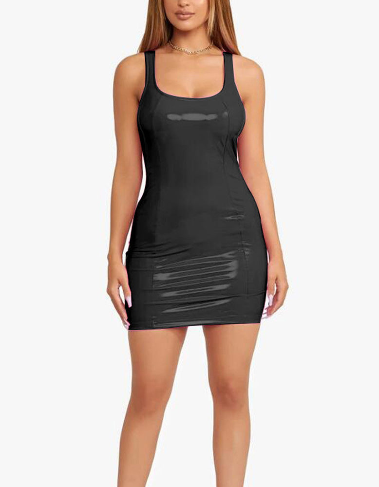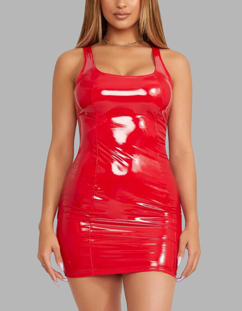 This Solid-color Nightclub Latex PU-Leather Short Bodycon Dress is perfect for any occasion. The slim fit and straight hem shape provide a chic. stylish look. It's made from PU Leather with slight stretch for a comfortable fit. and features stitching and backless details for an elegant touch. Plus. the dress comes in three color options to choose from: pink. red. and black.