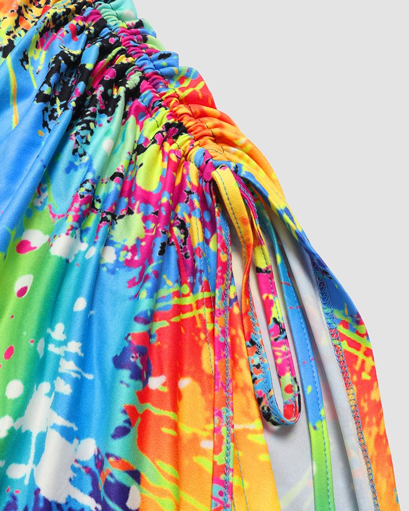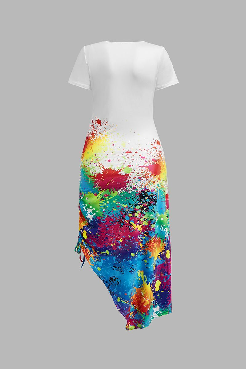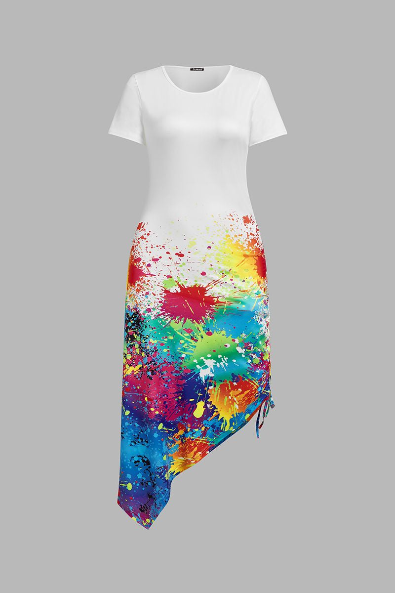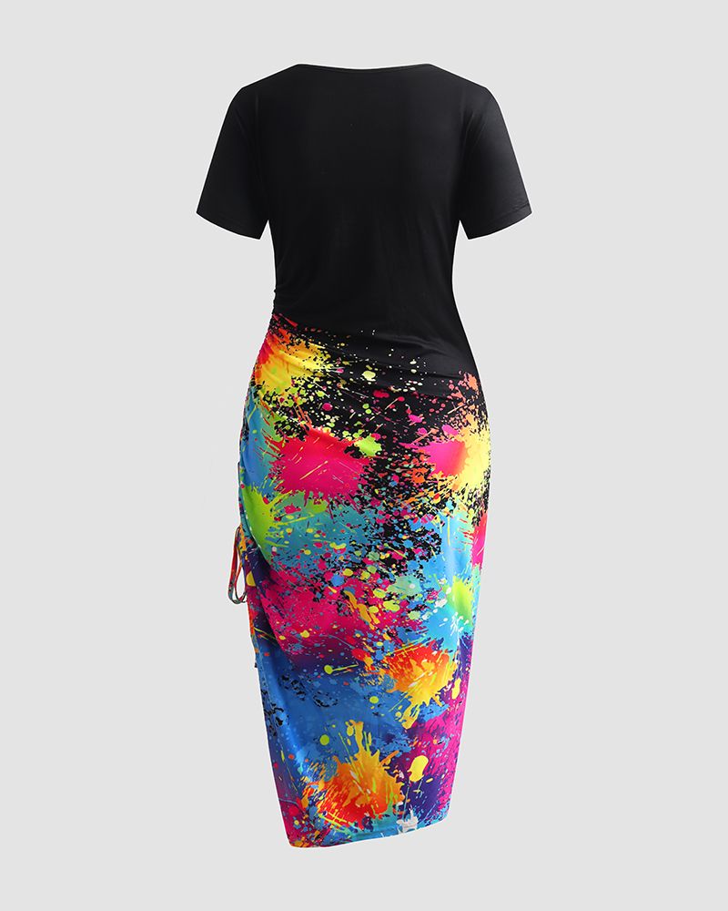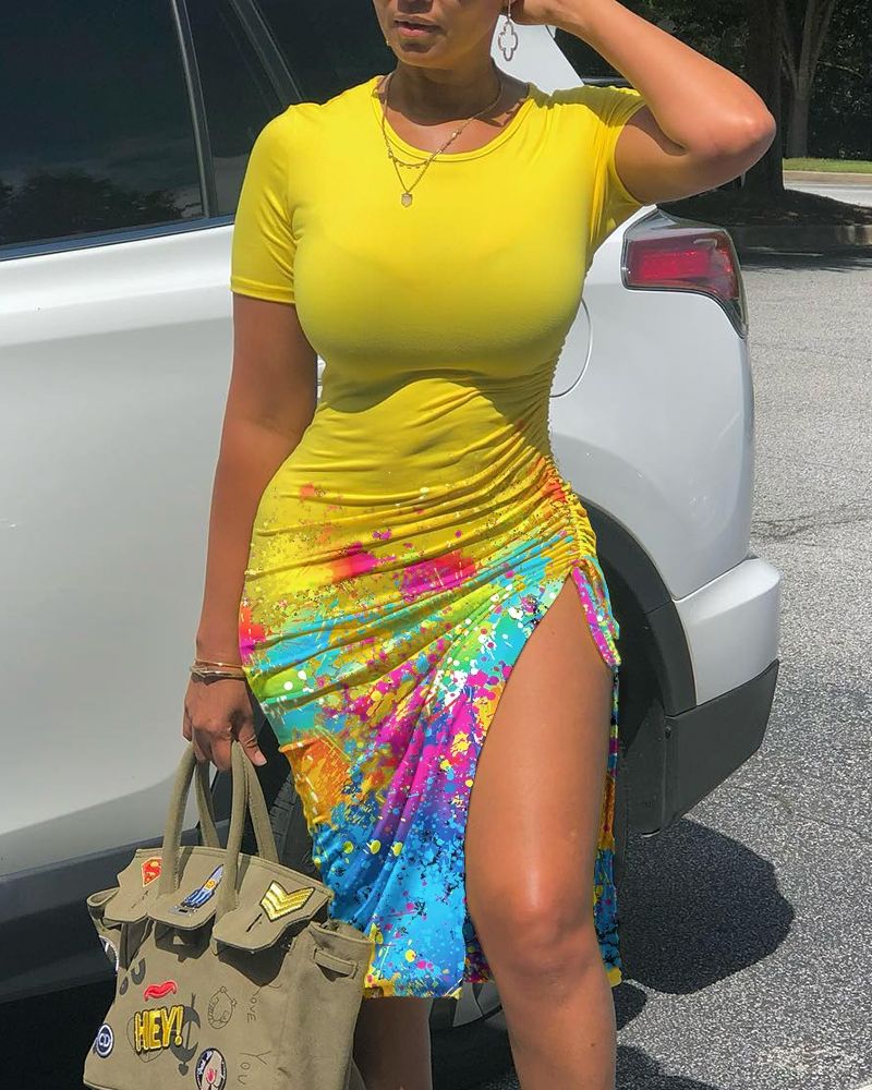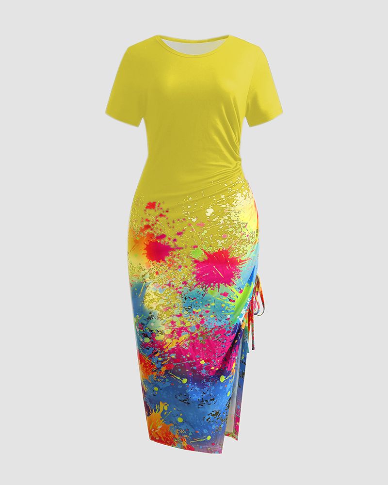 Solid Ruched Drawstring Split Thigh Knee Length Dress