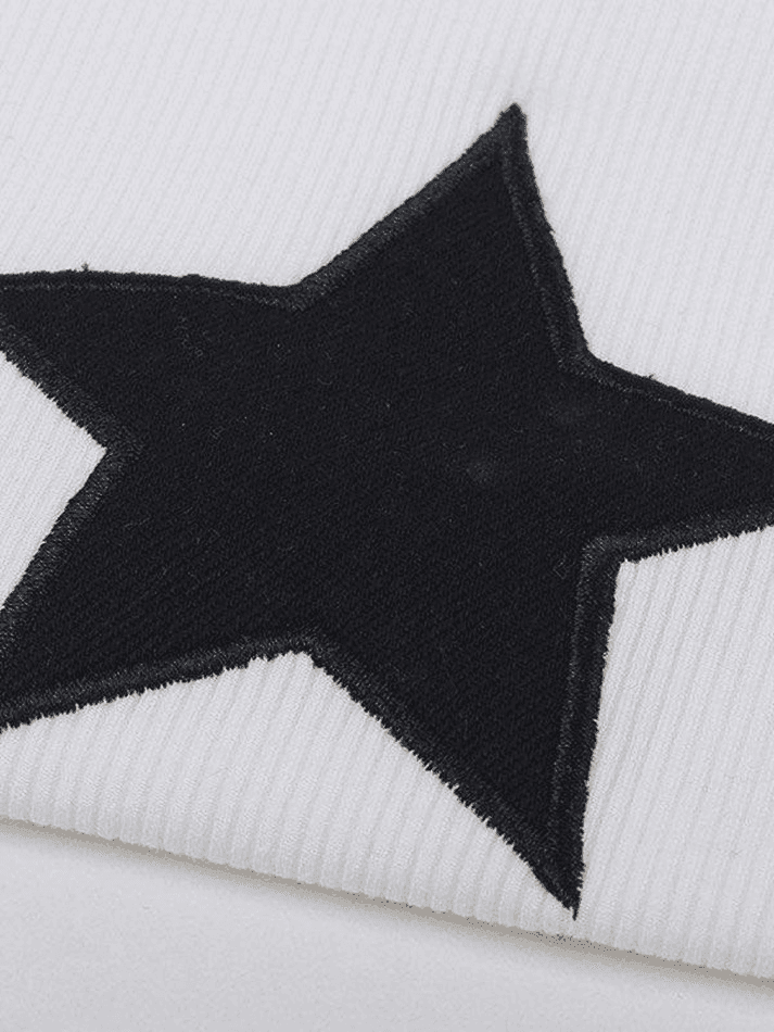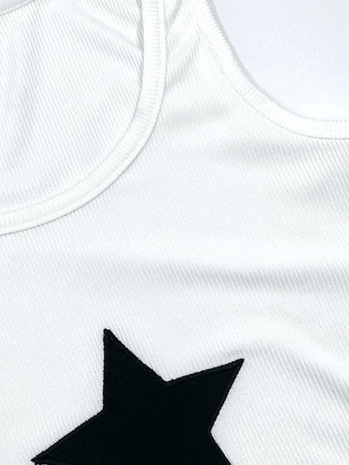 Description: Featured a star embroidered at front. these crop tops made from rib fabric. shaped to a tighten silhouette and racer back design.