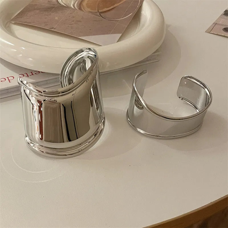 Take your look to new heights with these Stay Solid Silver Cuff Bracelet. These cuff bracelets are made from a silver material for a touch of luxe we are obsessing over. what's not to love? With a silver design and a chunky or slim fit depending on what you choose. it's a definite yes from us!