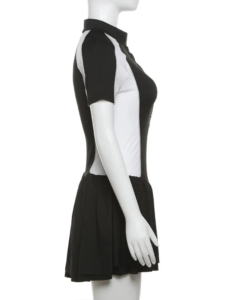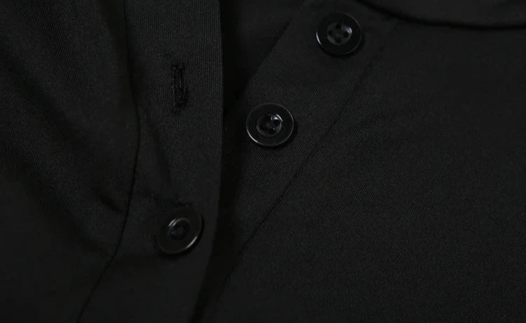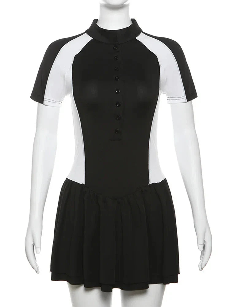 Enter the weekend in style with this Stay Sweet Mini Bodycon Dress. Brought to you in a black and white PU stretch material with a button up closure. short sleeves. and a pleated design. how can you say no? Style this cute mini dress with heels or sneakers and a mini bag for an effortlessly chic look like no other.