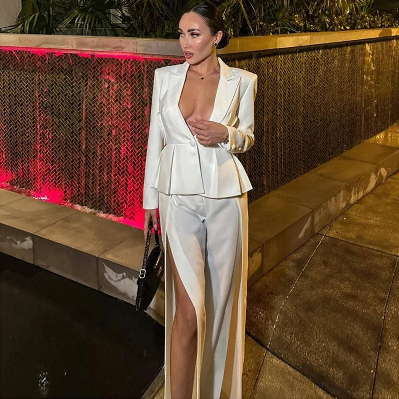 Look no further for the perfect formal outfit: this boss chic set will give you an expensive taste in style. Made from high quality materials. this sophisticated blazer and pants set offers a classy and stylish look.