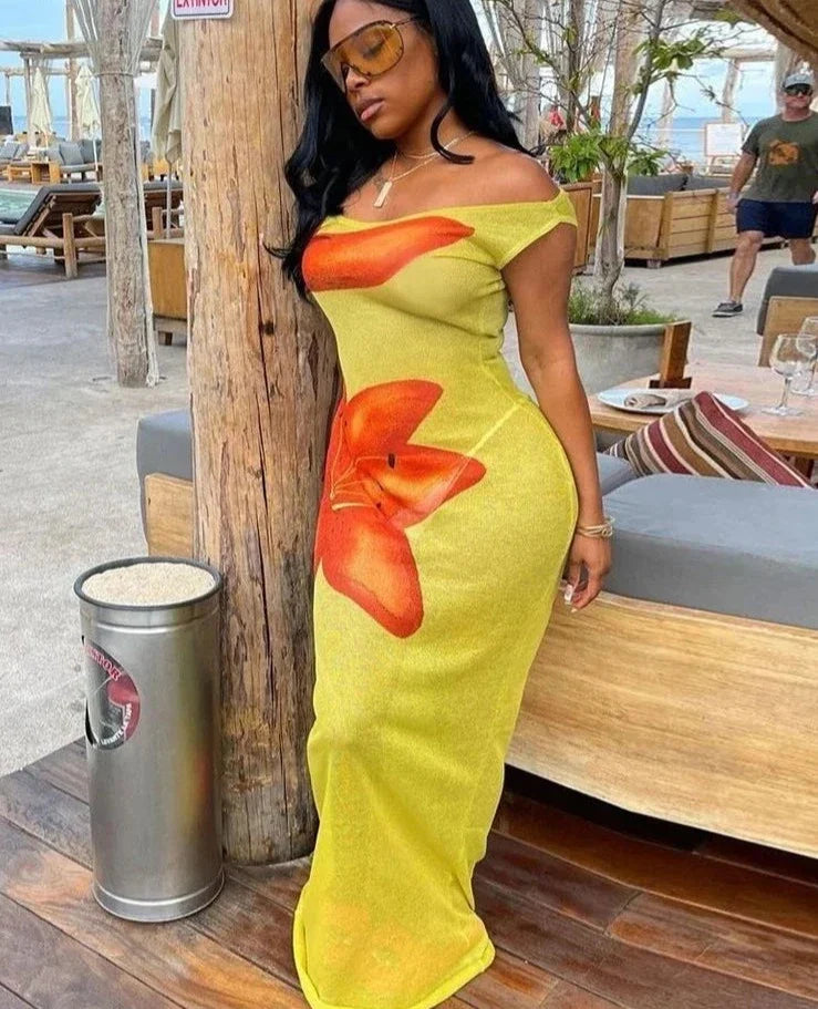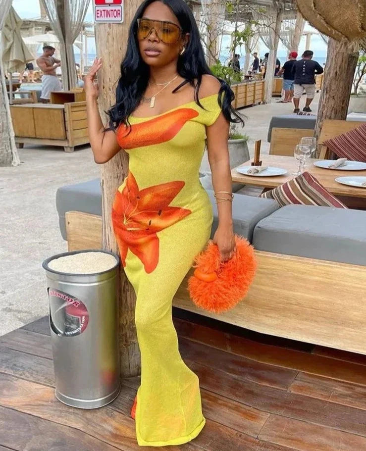 Turn up the heat with this Sunset Beach Maxi Dress. Its light stretch material with an all over flower design in a maxi style adds all the luxe vibes to your look! This maxi dress is just what you need to have all the eyes on you this season. Style effortlessly with your favorite heels or sandals. gold accessories and a mini bag for a look that everyone will love.