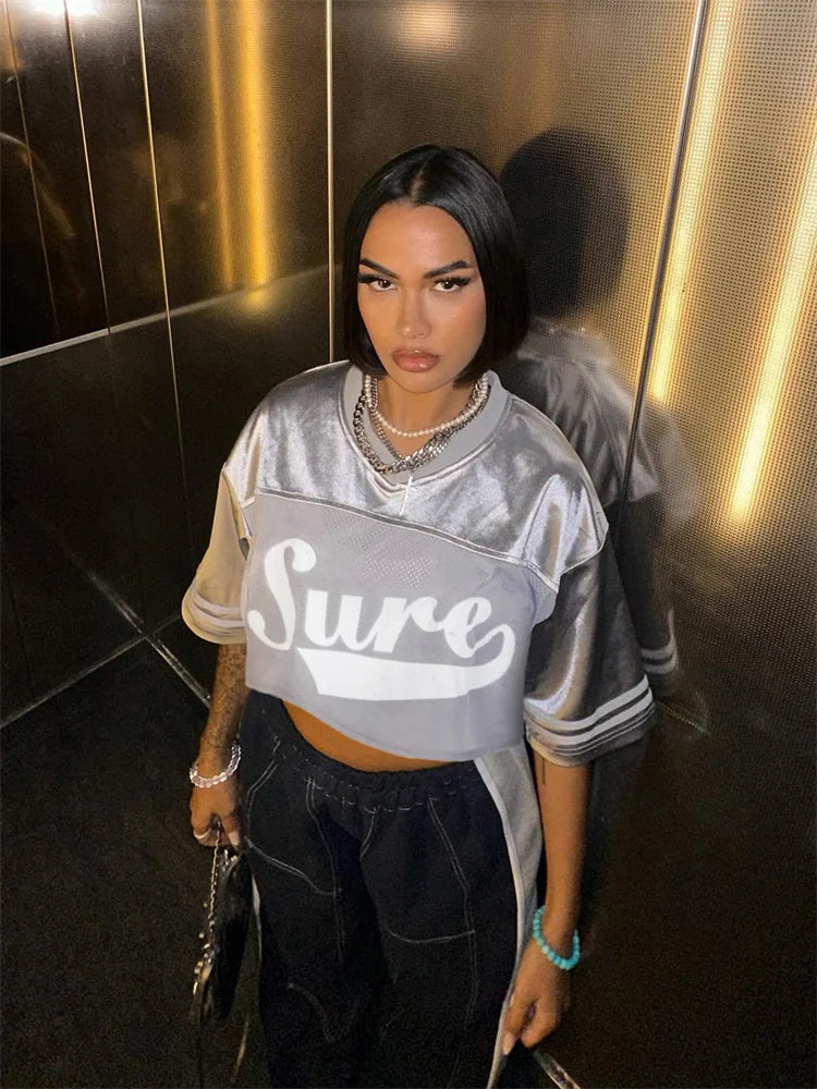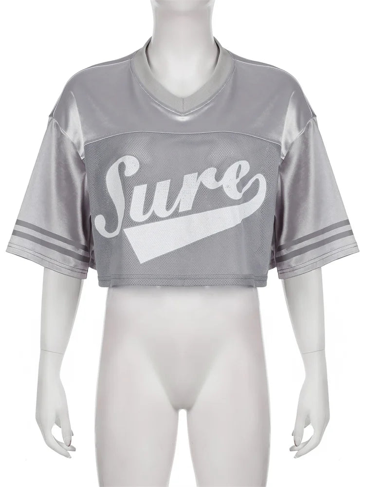 Keep it stylish and cute with this Sure Jersey Crop Top. Made from a gray hue material with a 'Sure' sport collective design and contrast binding detail. how can you resist? Team this top with jeans. sneakers and simple accessories for an off-duty look like no other.
