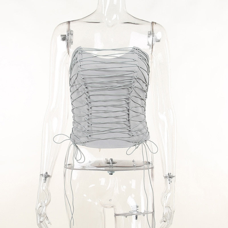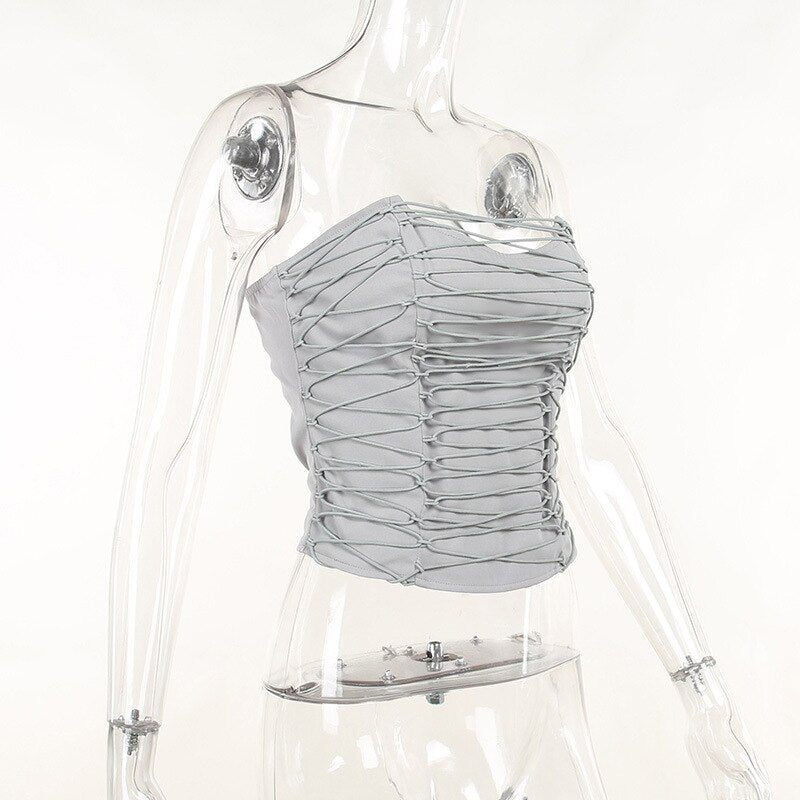 Step out in style this season with this Tangled Up Strapless Top. Featuring a gray PU material with front detailing straps that gives you that effortlessly cool vibe. Whether you have weekend plans with the girls or want to switch up your everyday look. this top is a perfect piece for your wardrobe.