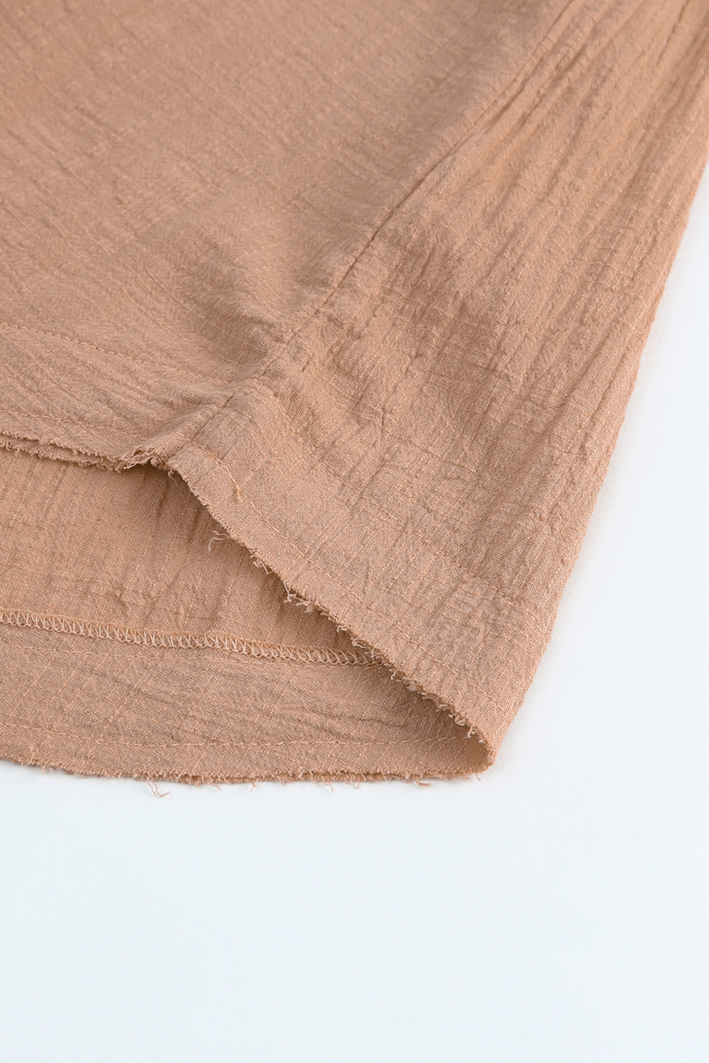 The v-neckline and half-sleeves give it a classic look. while the drawstring tassel detailing adds a touch of modern style.