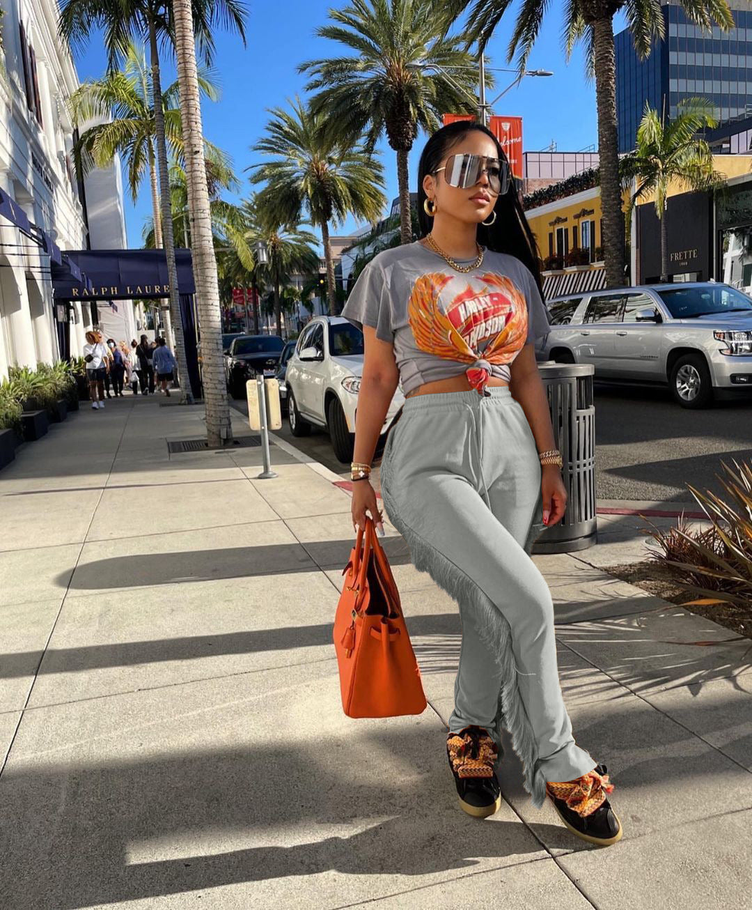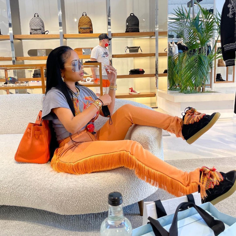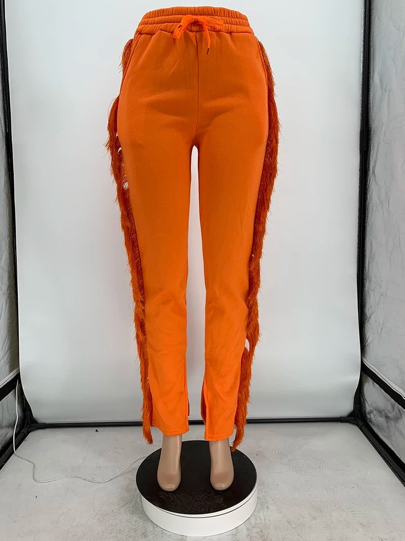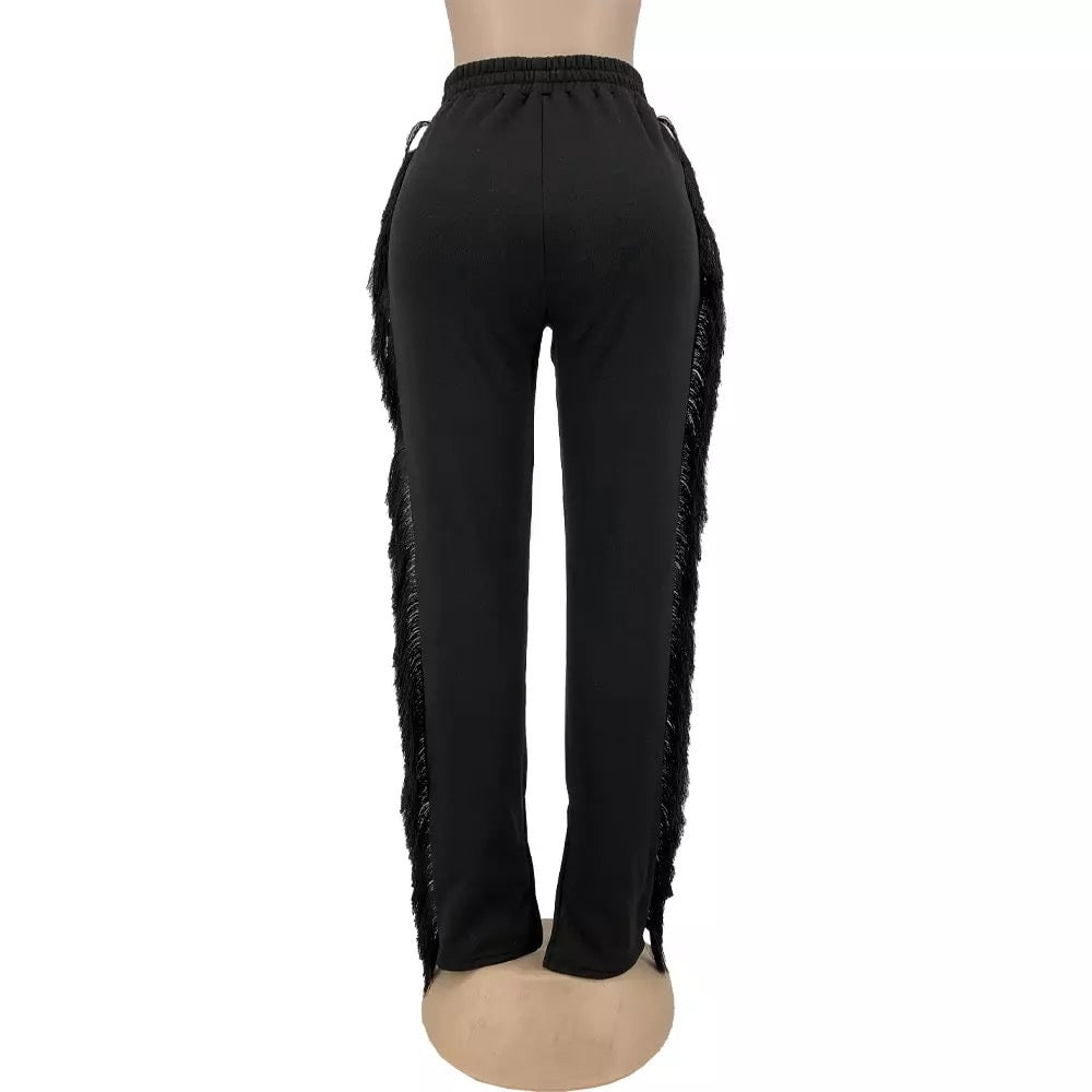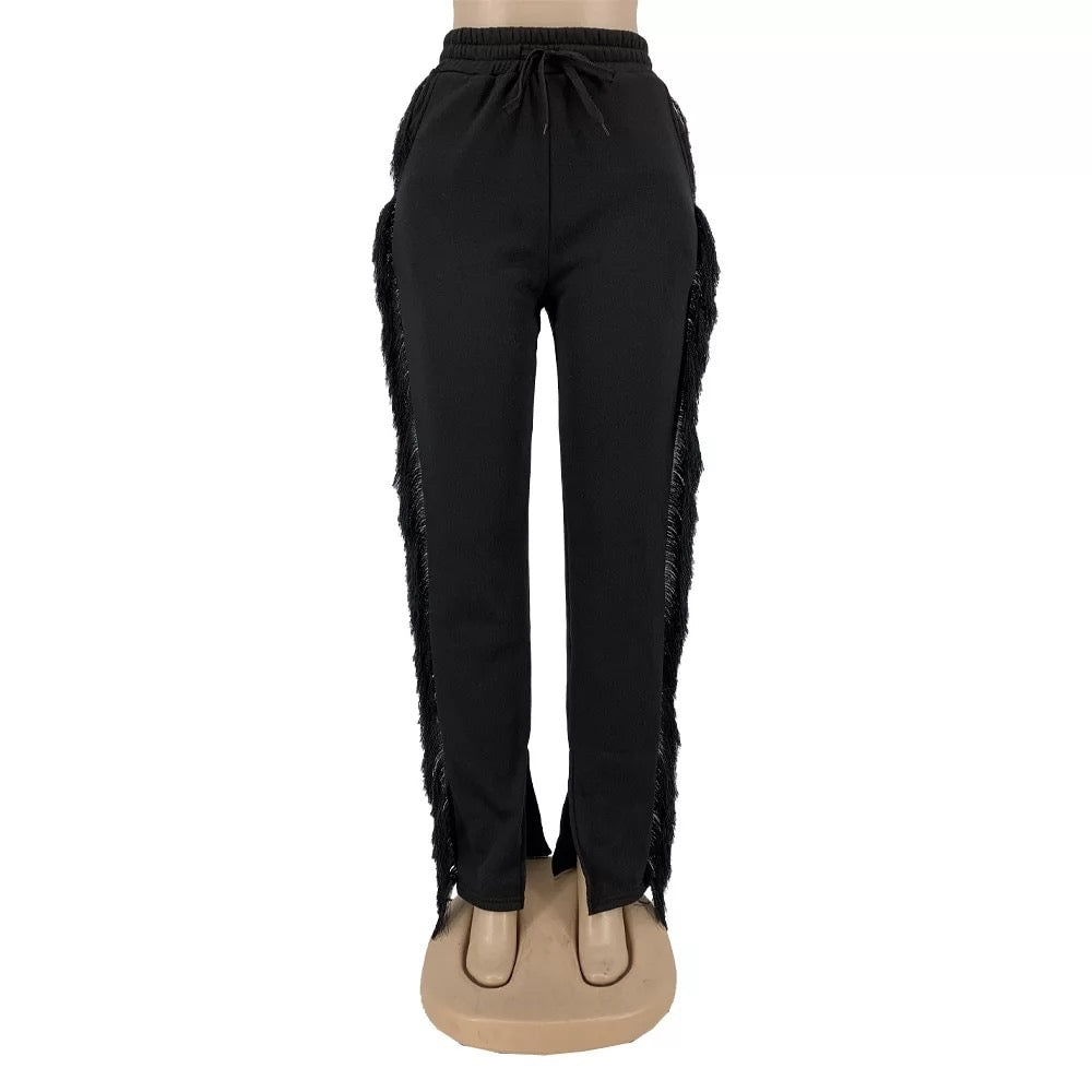 These Tassel Sweatpants are everything we're after this season. Featuring a cotton spandex material. tassels on the side. and a tie waist with a high waist style. Team these with a cute graphic t-shirt for an effortless basic look.