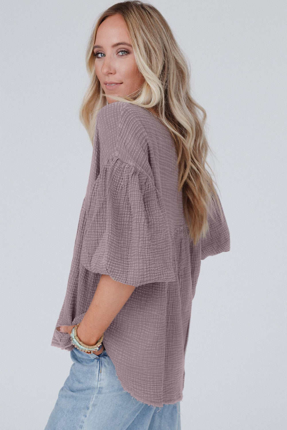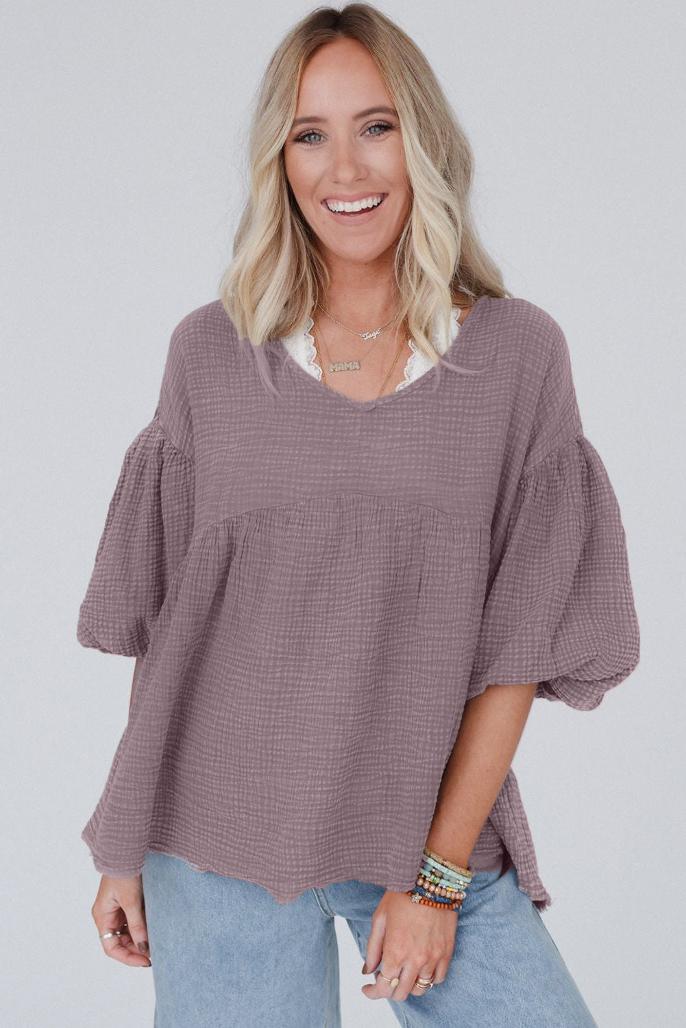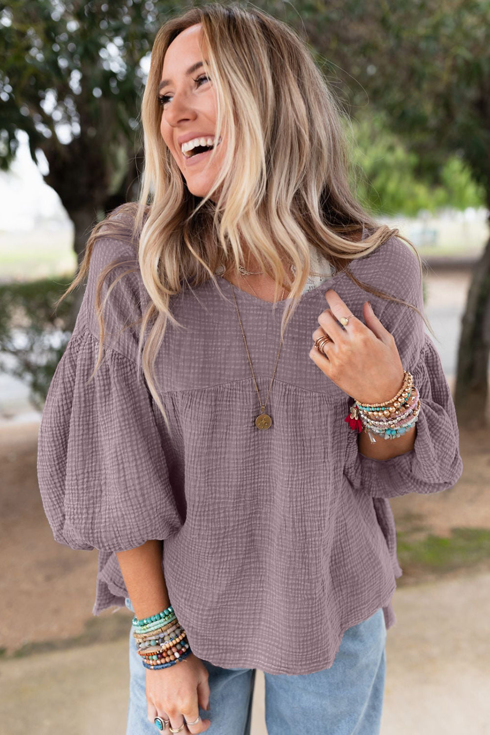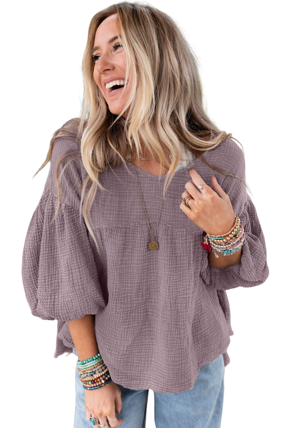 This Textured Bubble Sleeves Top is the perfect way to make a statement.