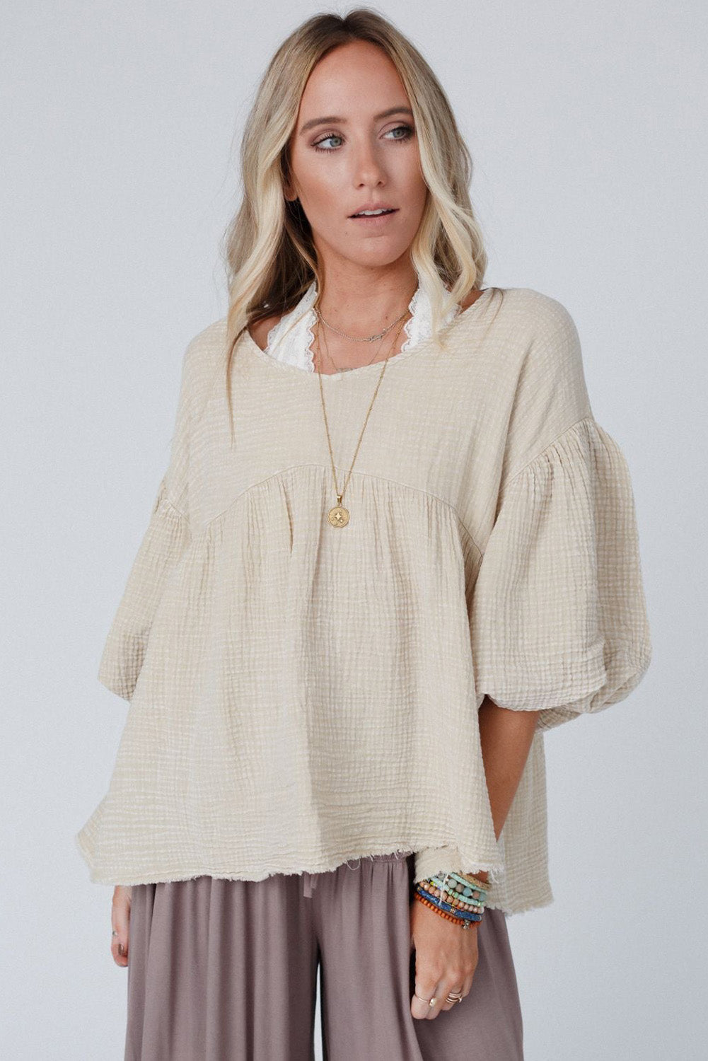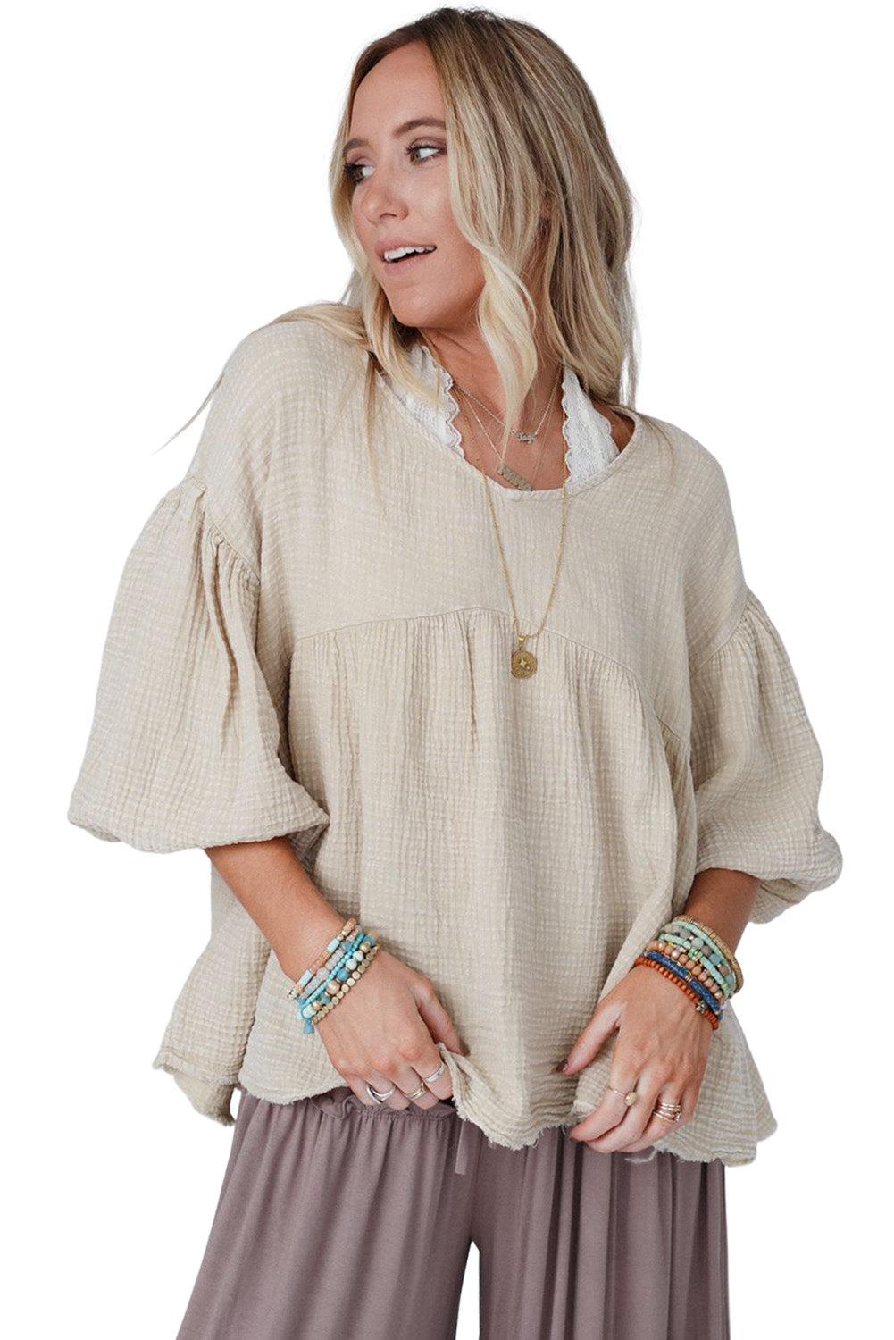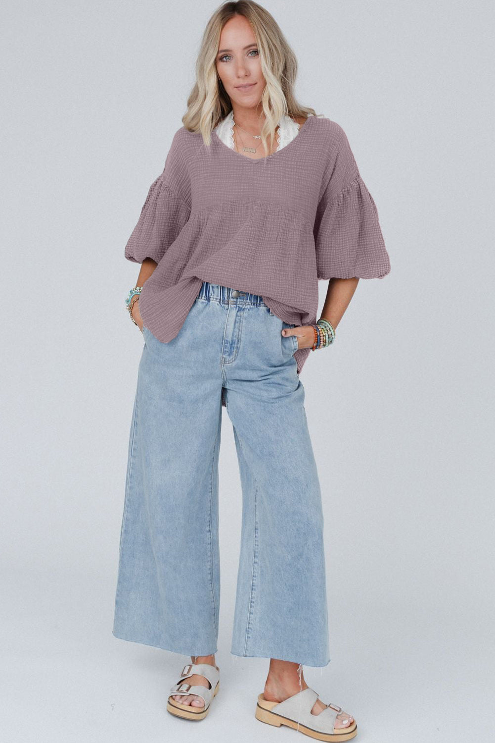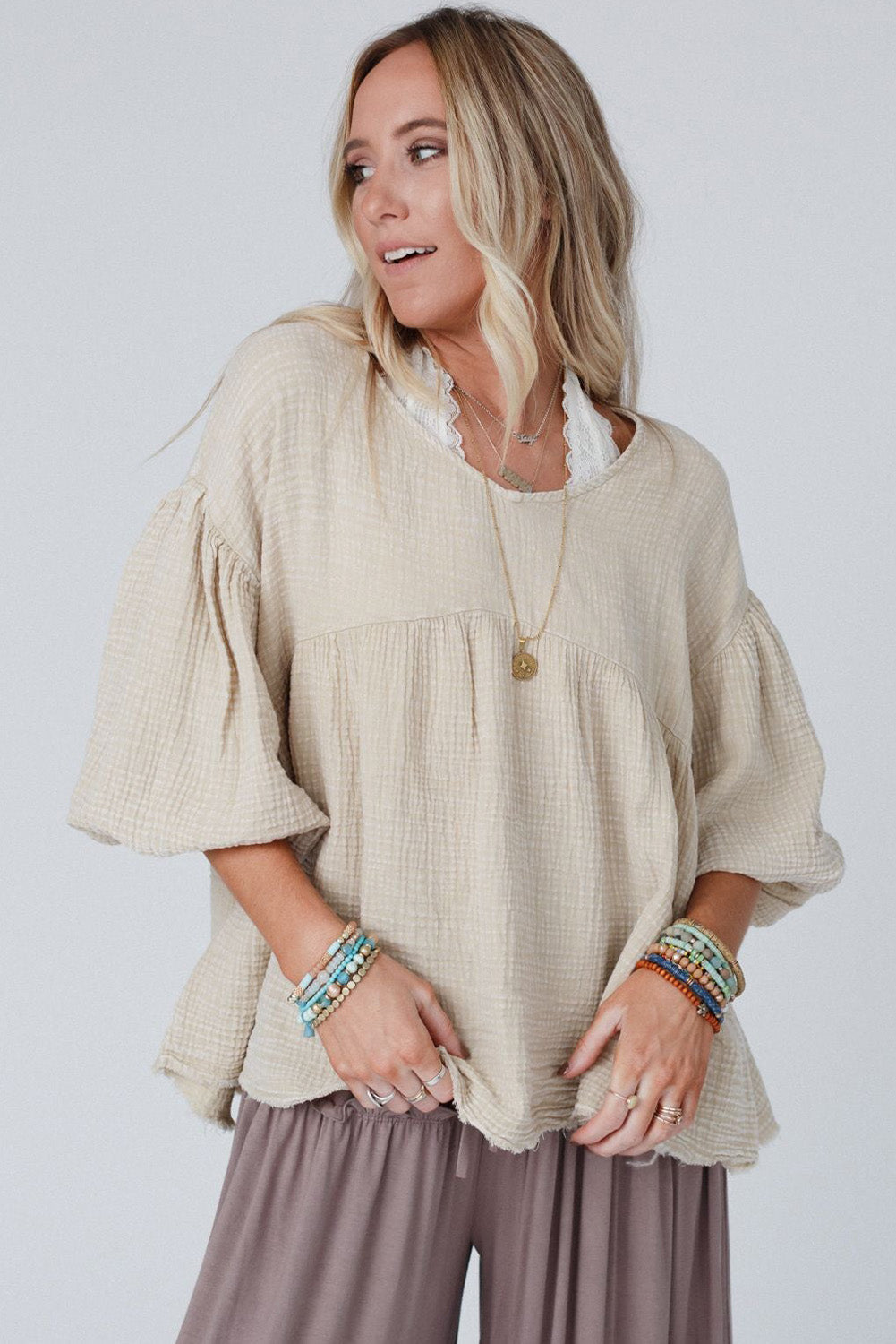 This Textured Bubble Sleeves Top is the perfect way to make a statement.