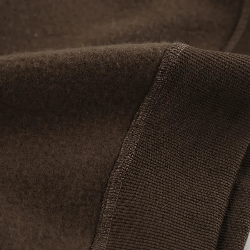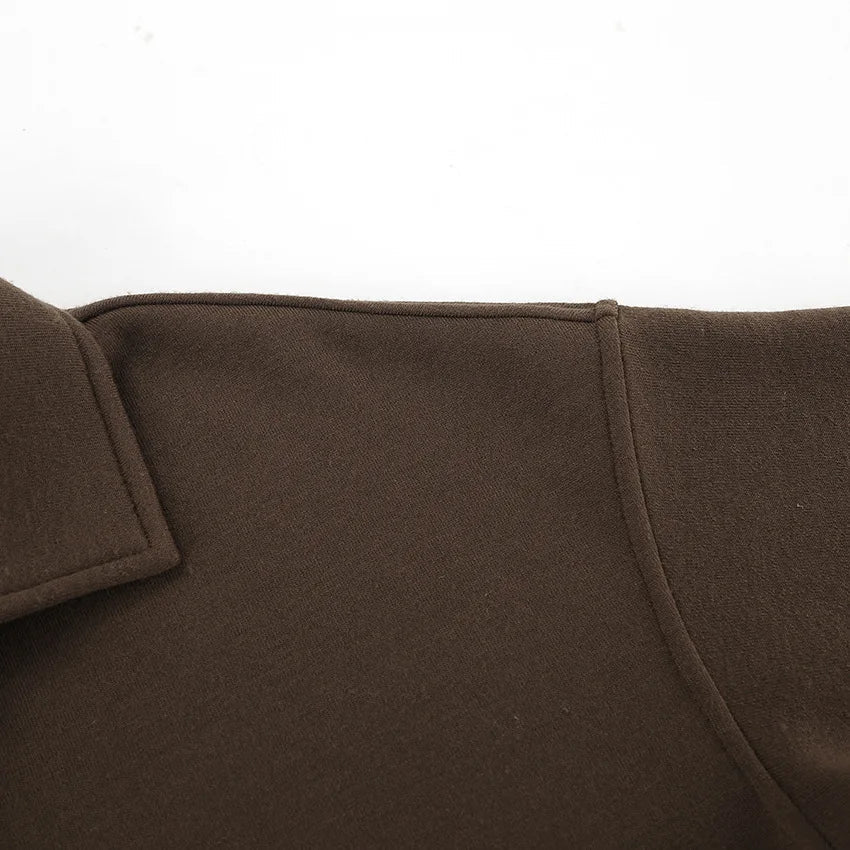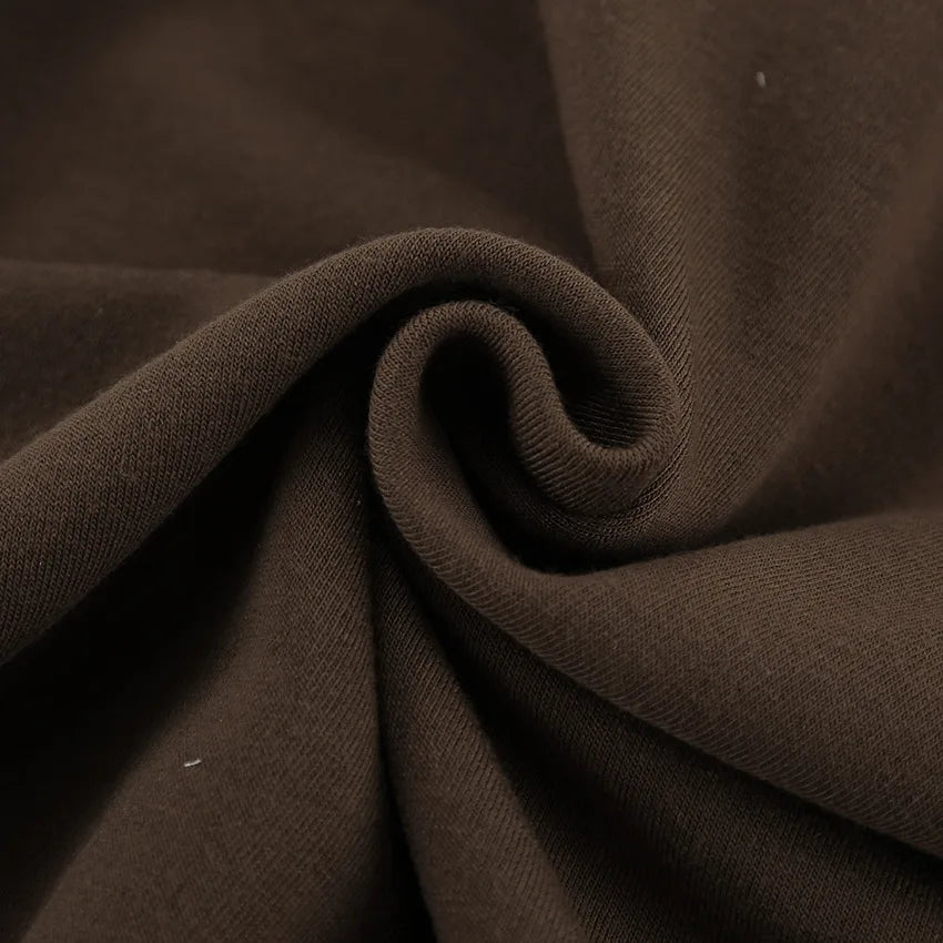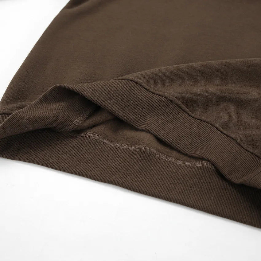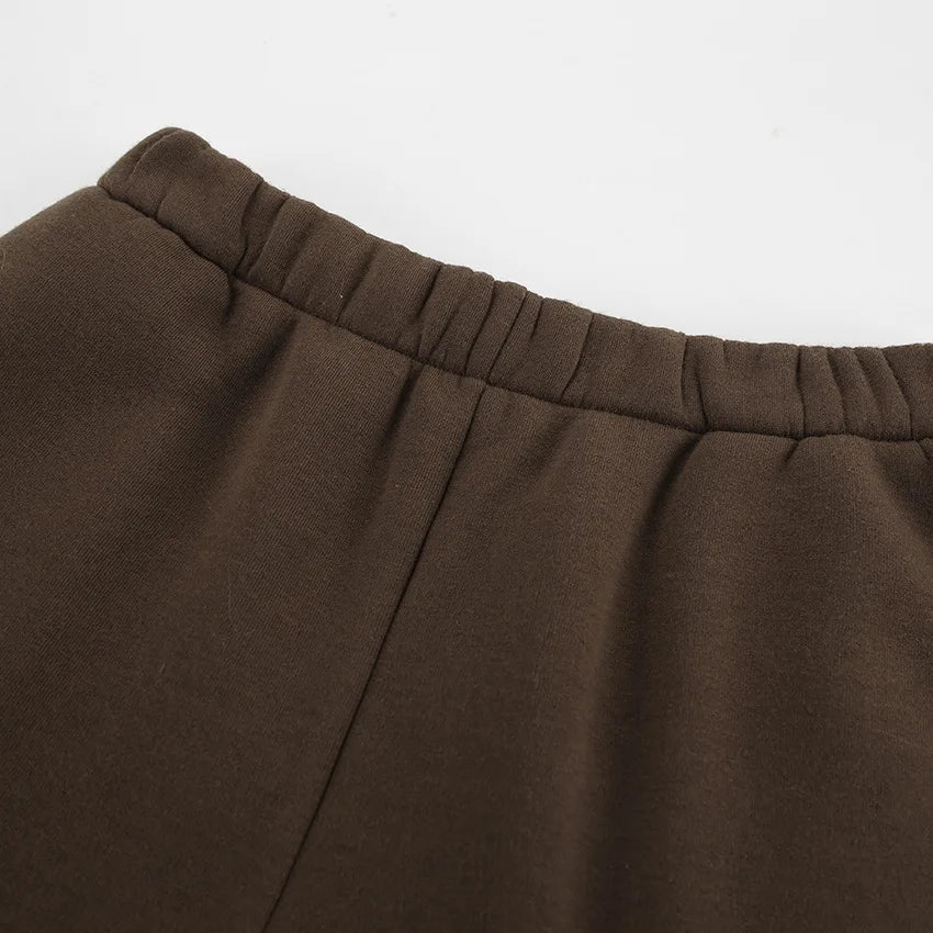 Whatever the occasion The Perfect Fit Two Piece Set is a must. Featuring a chocolate cotton hue material with a half zip-up design long sleeve sweatshirt and matching loose fitting shorts. Team with your favorite shoes and minimal accessories for a look that will win serious style points.