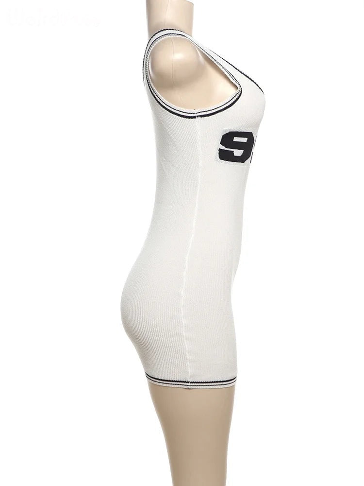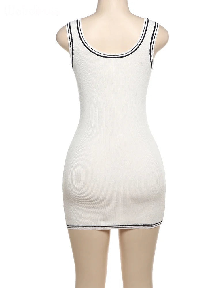 Show off your style in this figure-worshipping The Year Of 998 Bodycon Mini Dress. Featuring a white rib material with black trimming. front graphic design and a bodycon fit. team this with heels and statement accessories for a look we're loving.
