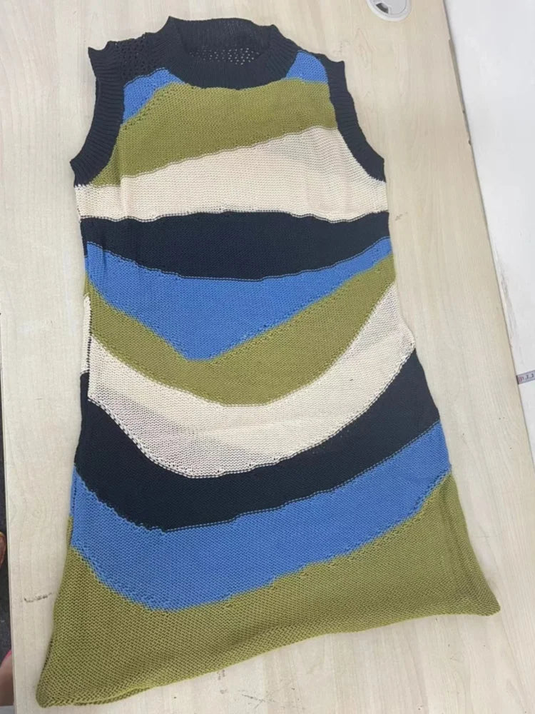 This Tidal Wave Knitted Mini Dress is sure to make you the center of attention. Featuring a blue stripe multi color knit material with a short sleeve design and a figure-flattering fit. we're obsessed. Just add heels and gold accessories to complete the look.