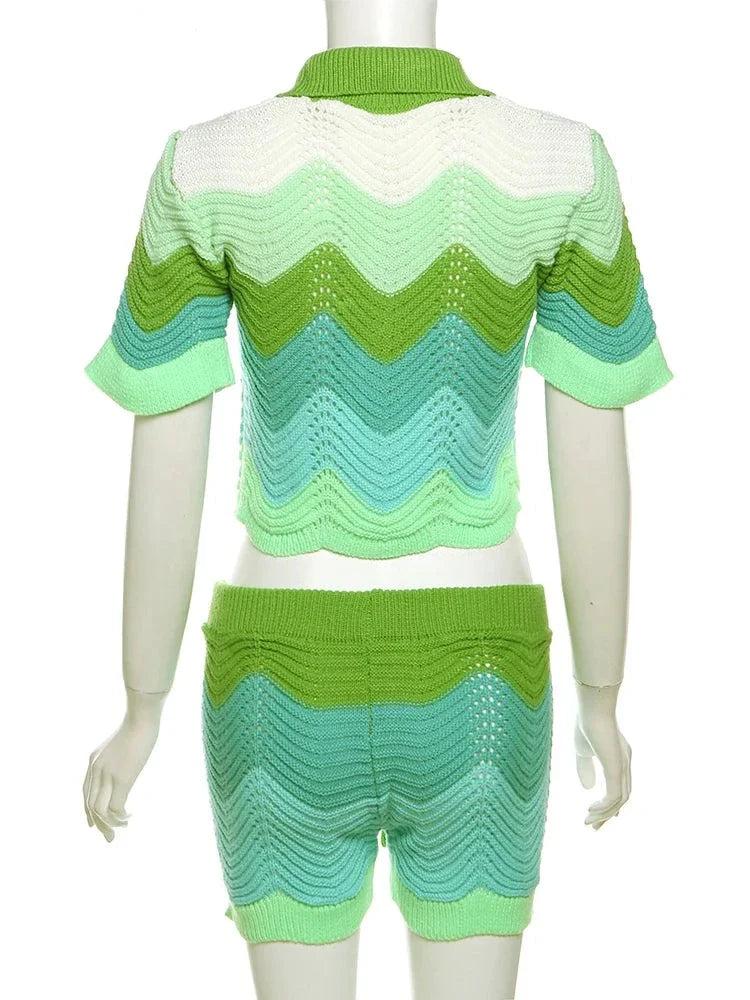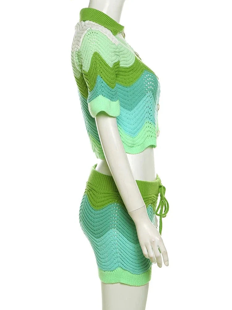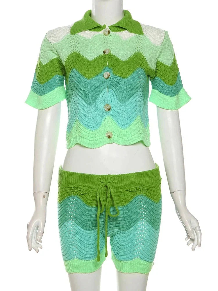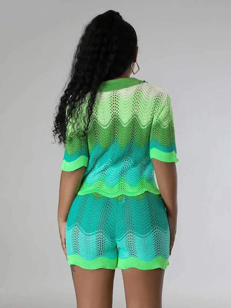 Give your new season wardrobe the refresh it needs with this Trip To The Sea Two Piece Set. Brought to you in an ombre color knit material with a button up short sleeve top and high waisted relax fit shorts. how could you say no? To complete the look style this two-piece set with sandals and mini bag for a flawless finish.