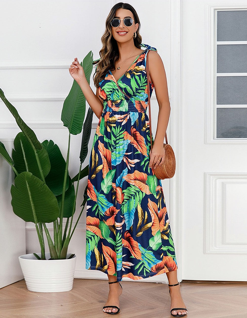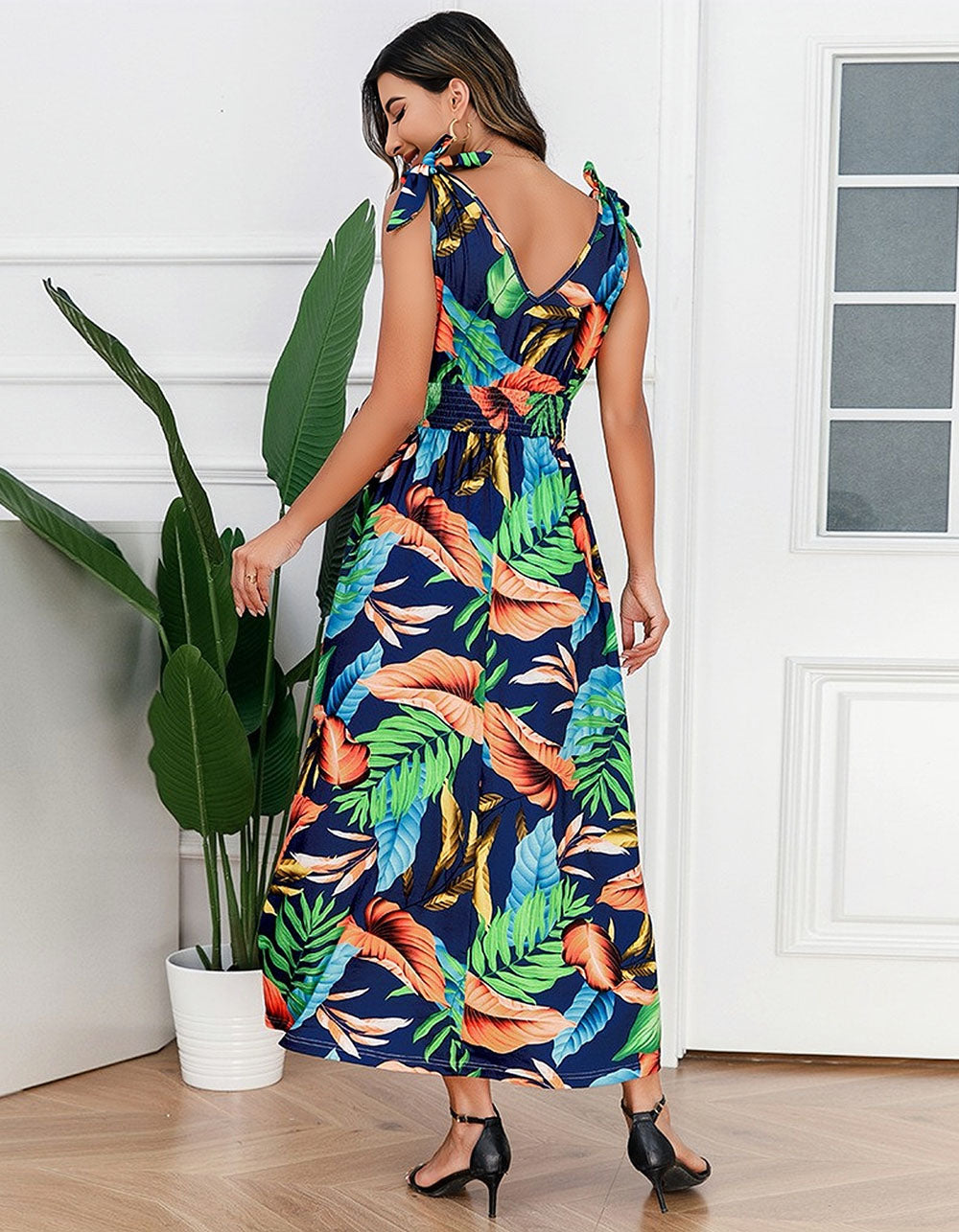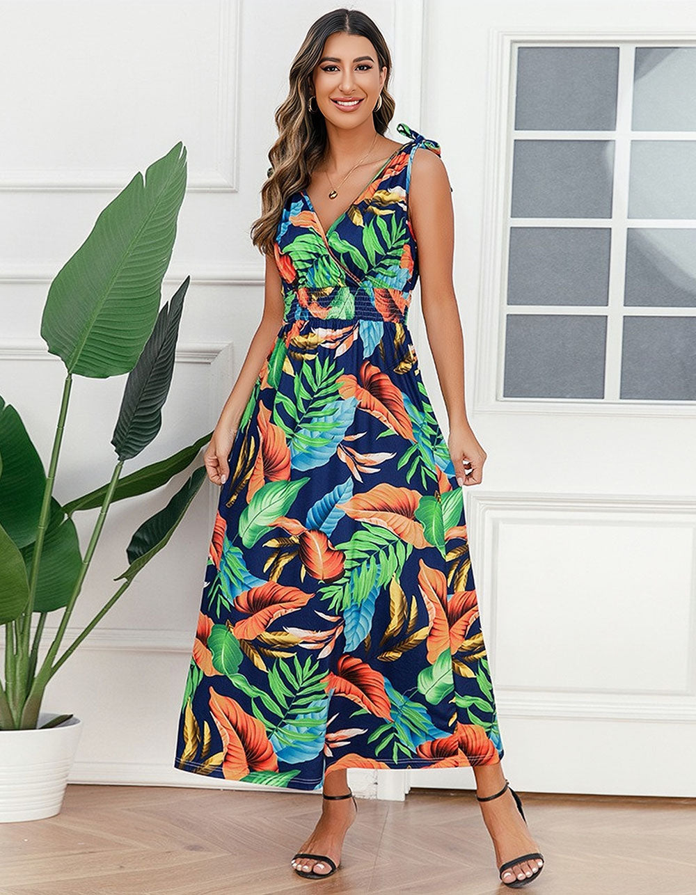 This stylishly-designed A-line dress is an ideal choice for all seasons. Constructed from lightweight. slightly-stretchy Polyester. it features a mid-waist trim. a backless design. and a ruffle hemline that will draw the eye. Available in 4 vibrant colors ï¿?Red. Blue. Yellow. and Black - and 3 distinct styles. Cute. Elegant. and Casual. this dress is sure to make a statement. Its unique Plant print adds a chic touch of sophistication.