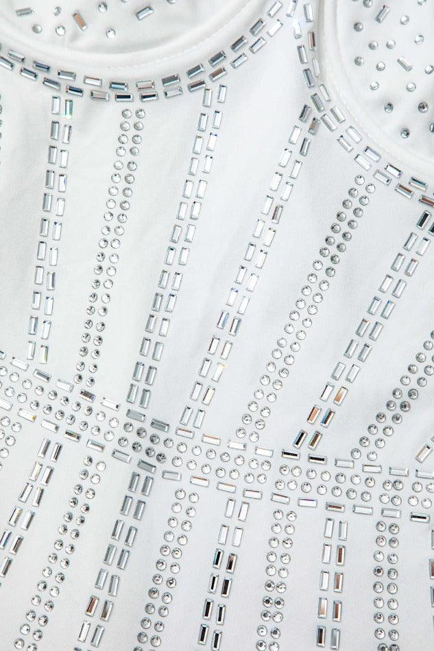 U-neck Rhinestone Decor Slip Mini Dress