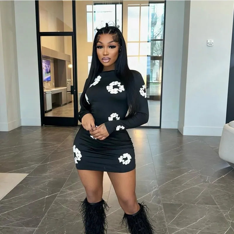 Elevate your look to new heights with this Under Your Spell Floral Long Sleeve Dress. Brought to you in a black soft stretch material with an all over floral print design. what more could you want? This dress is perfect for those upcoming occasions in your bucket list. Team with a pair of boots and your favorite accessories for a statement look like no other.