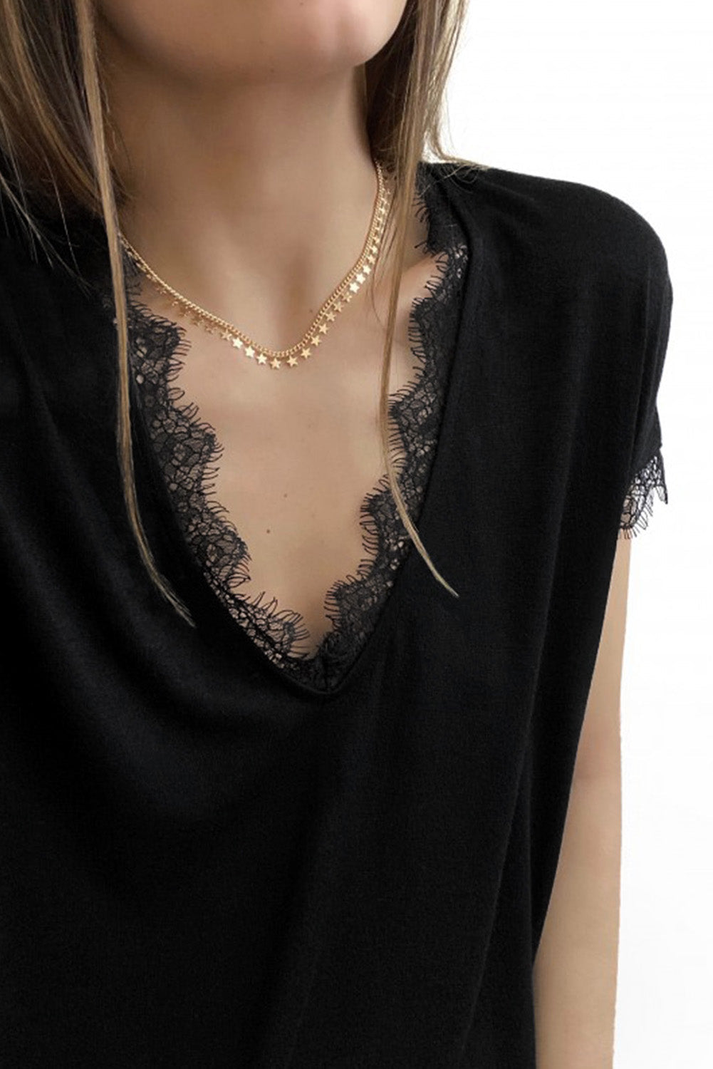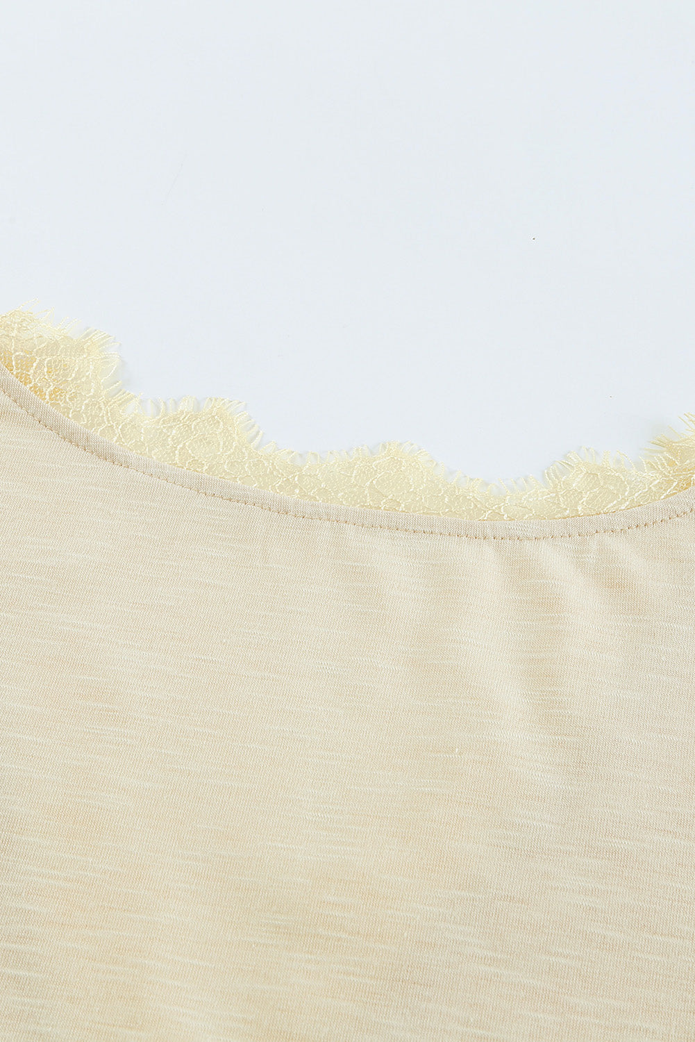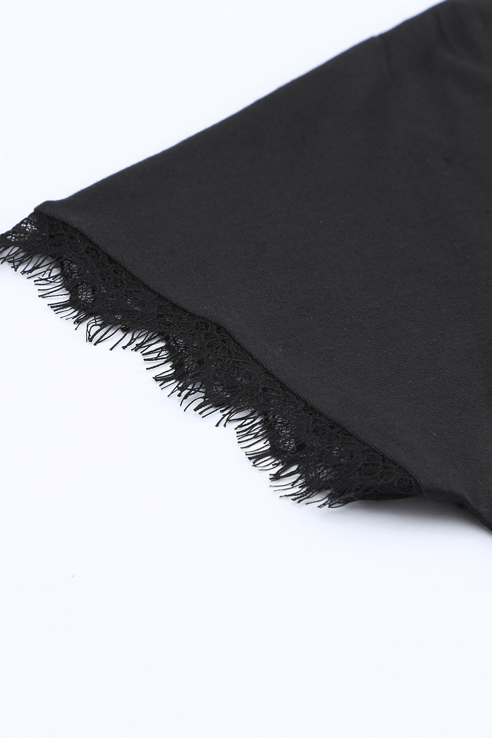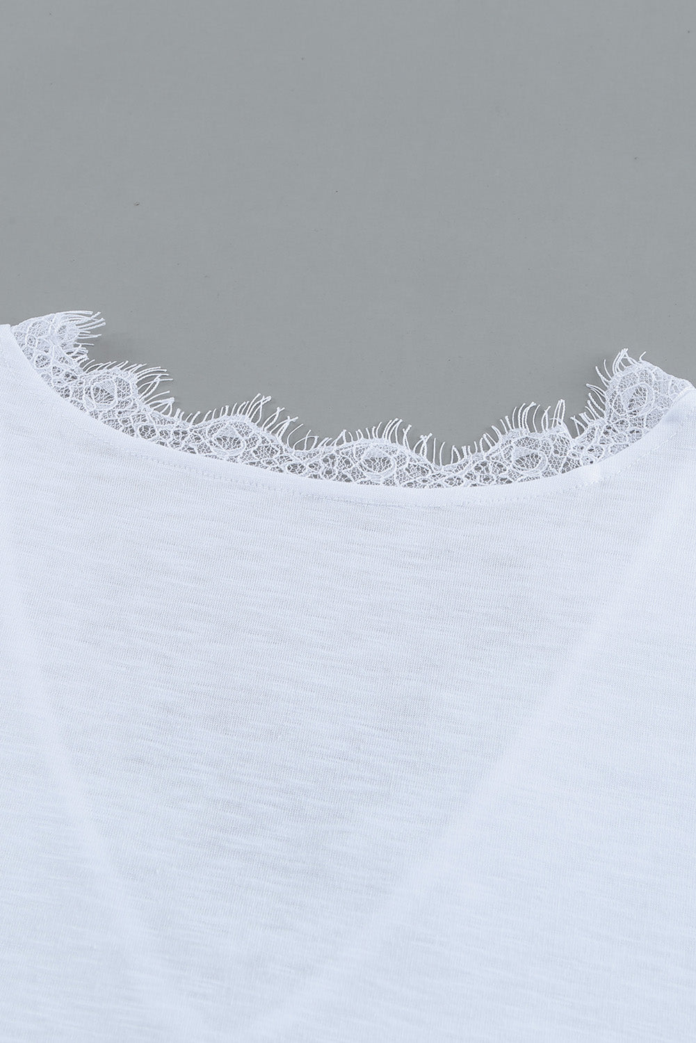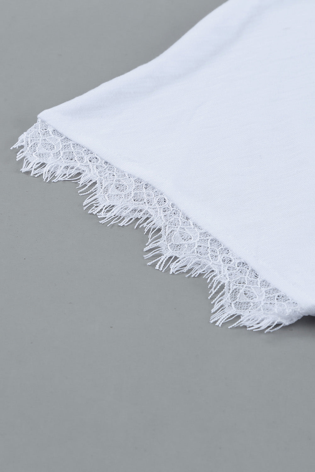 This V Neck Lace Trim Short Sleeve Top is the perfect addition to your wardrobe.