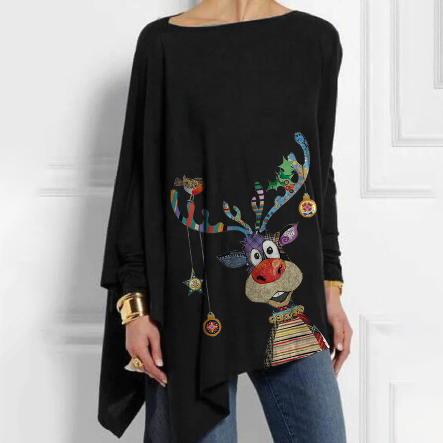 Various Ornaments Hung On The Head Of The Elk Funny Printed T-shirt