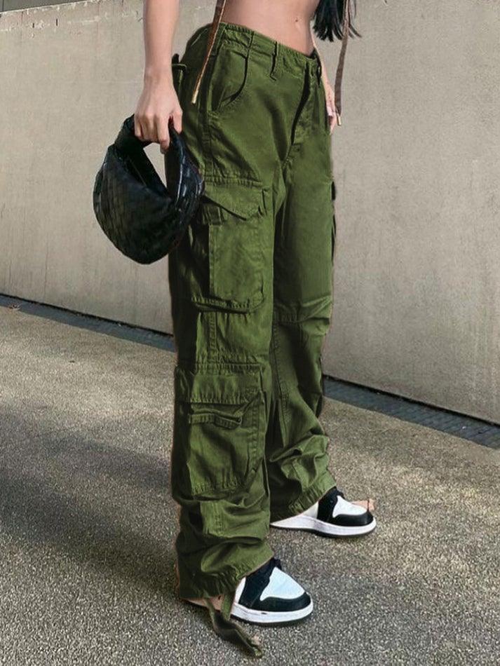 Design: Cargo Pockets Patched Detail. Zip & Button Fastening. Low Rise Waistline