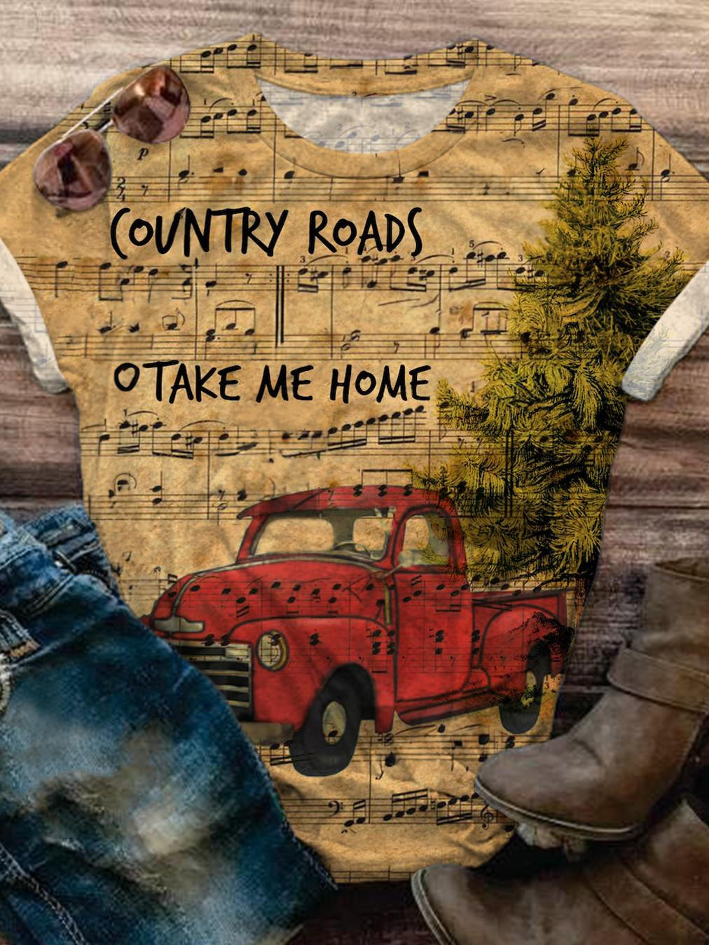 Vitange Truck Print Crew Neck T-shirt