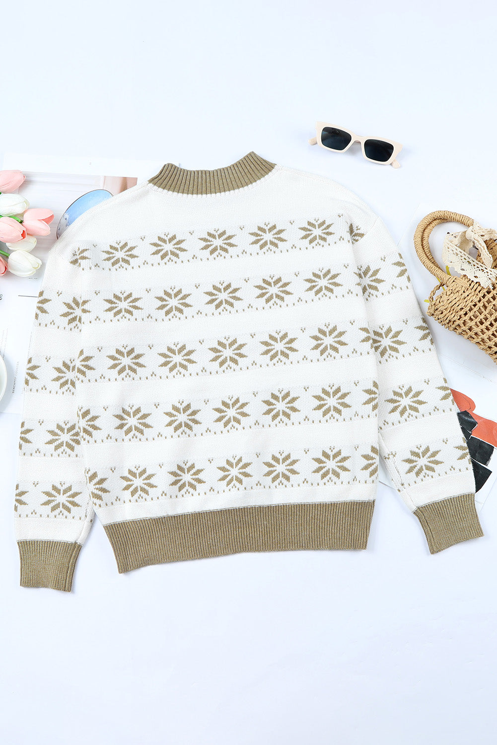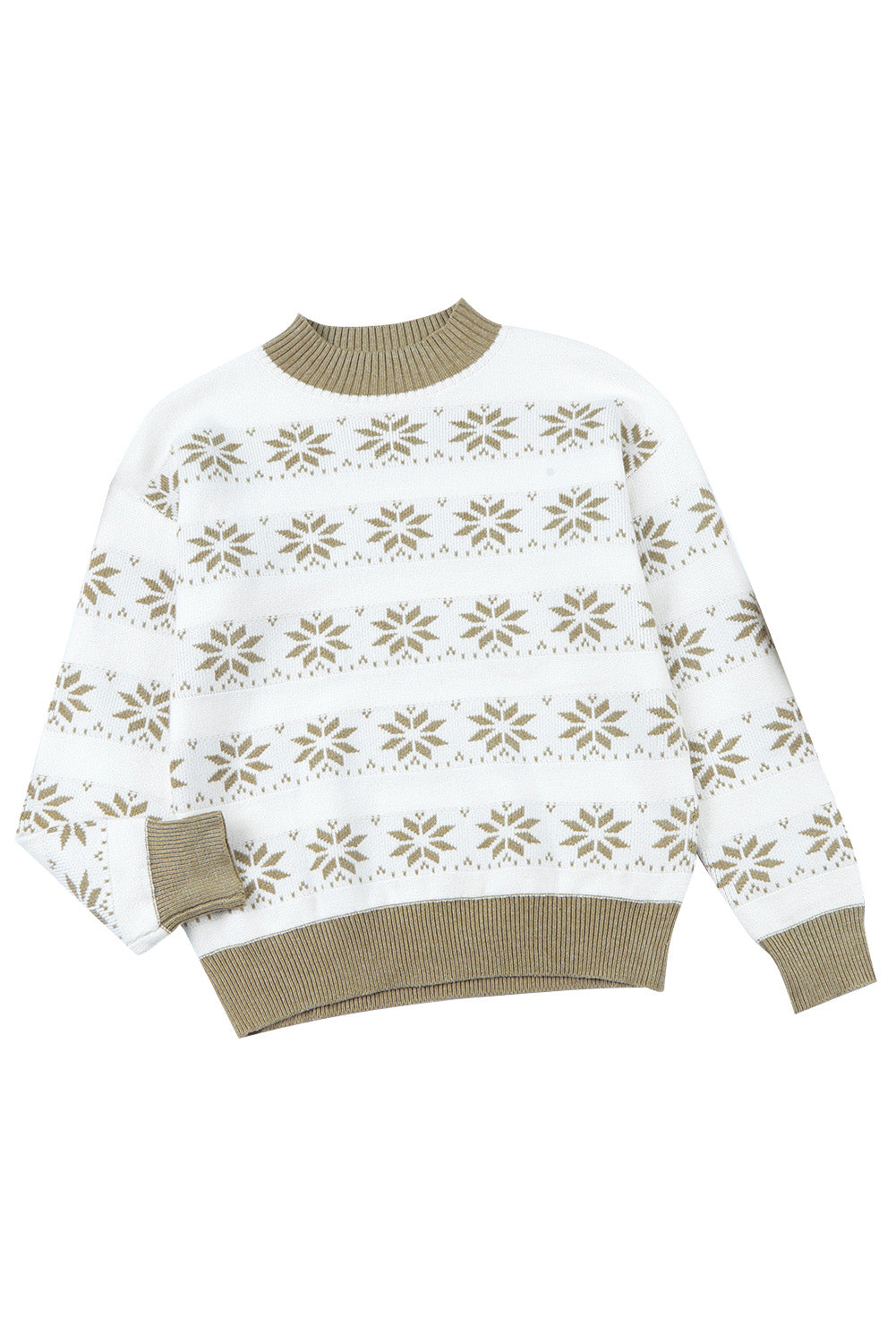 Whether you're attending a holiday party or just lounging around the house. the White Christmas Snowflake High Neck Knit Sweater is the perfect choice for staying warm and stylish.