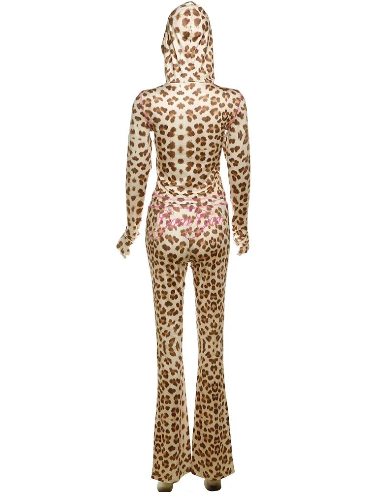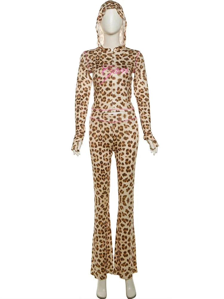 Channel new season trends with these Wild For The Night Animal Print Two Piece Set. Brought to you in a brown hue material with pink stitching. a leopard print design. a crop top hoodie jacket and matching wide leg pants. we are obsessed. Pair this two-piece set with sandals or heels and accessories for a look that is perfect for your next vacay.