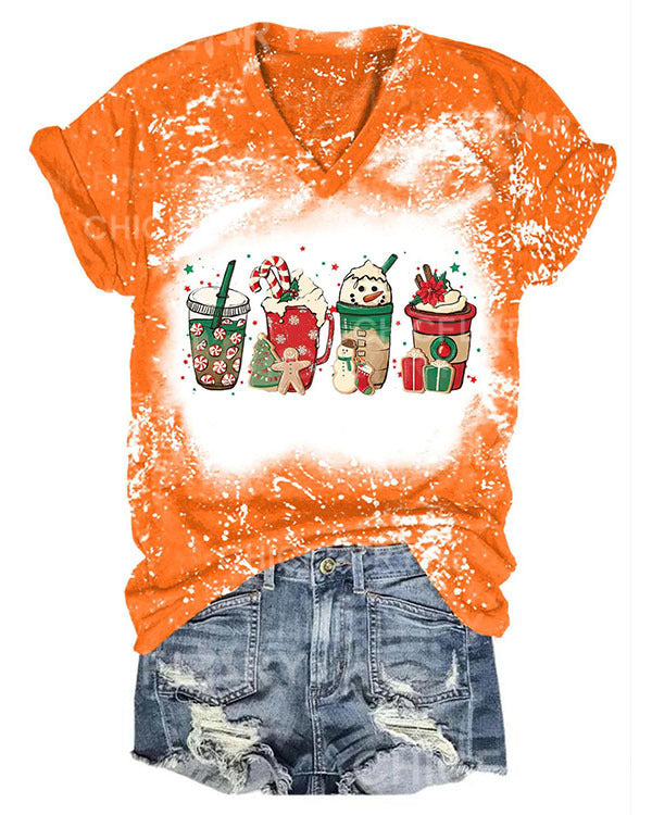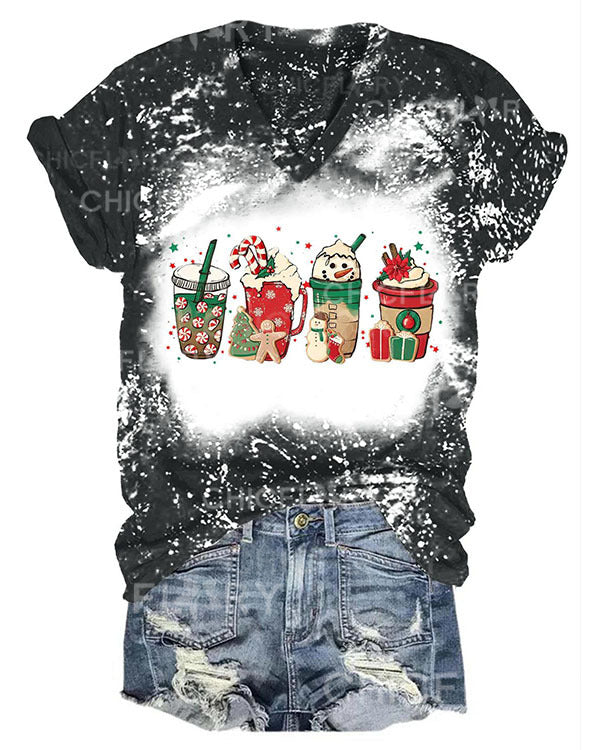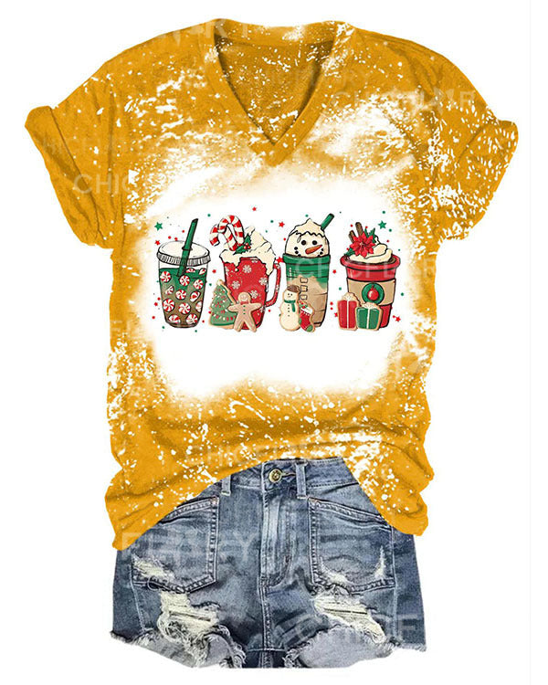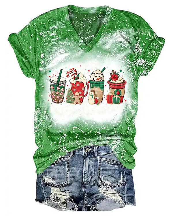 Women Merry Christmas Coffee Snowman Print T-Shirt