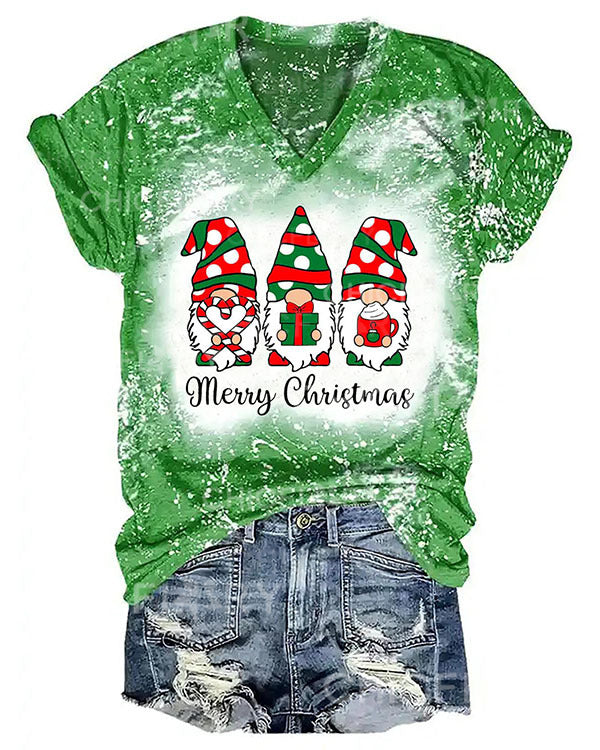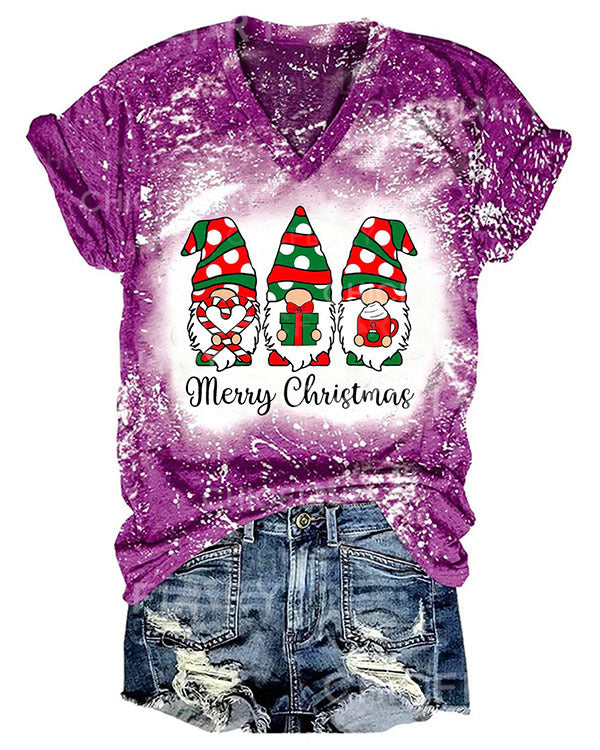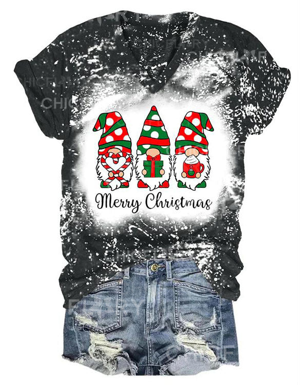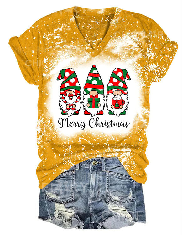 Women Merry Christmas Wave Point Gnomes Print T-Shirt