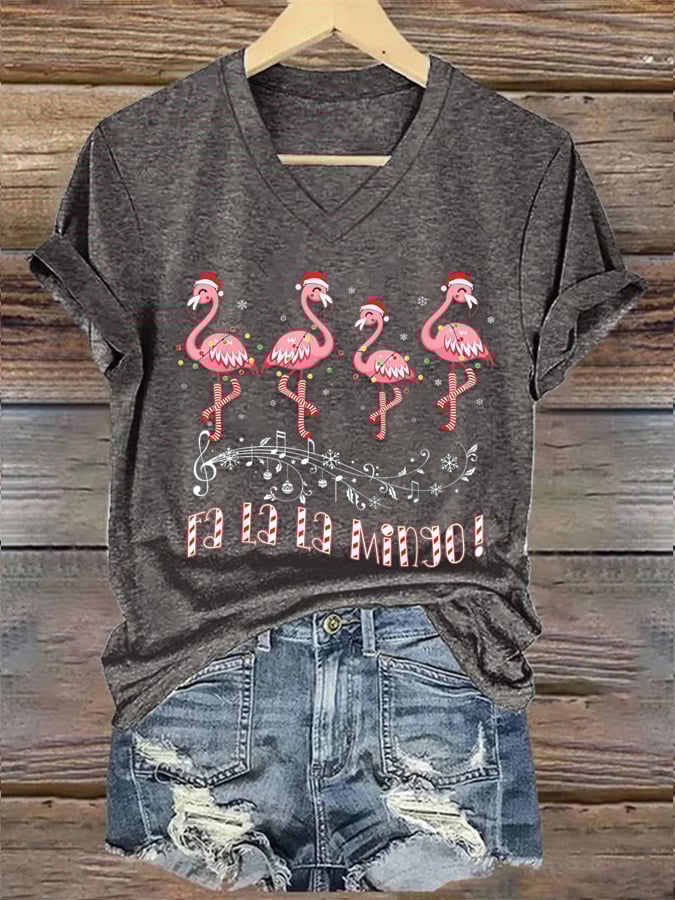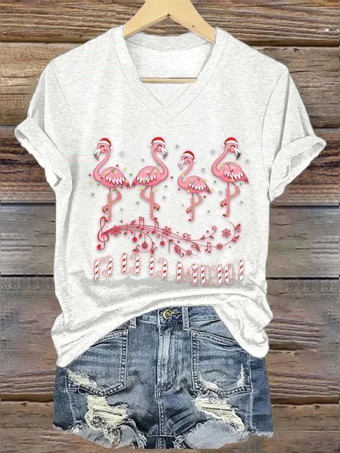 Candy Cane Flamingoes Fa La La Mingo Flamingo Christmas Print T-Shirt