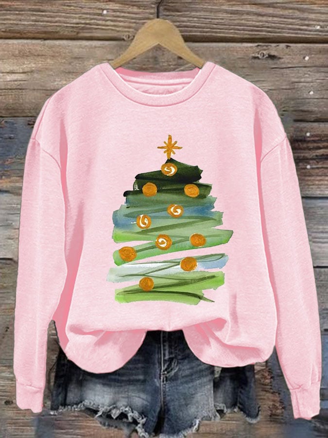 Women'S Casual Abstract Christmas Tree Printed Long Sleeve Sweatshirt