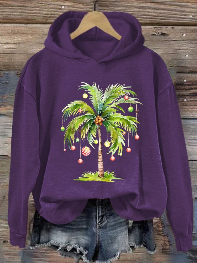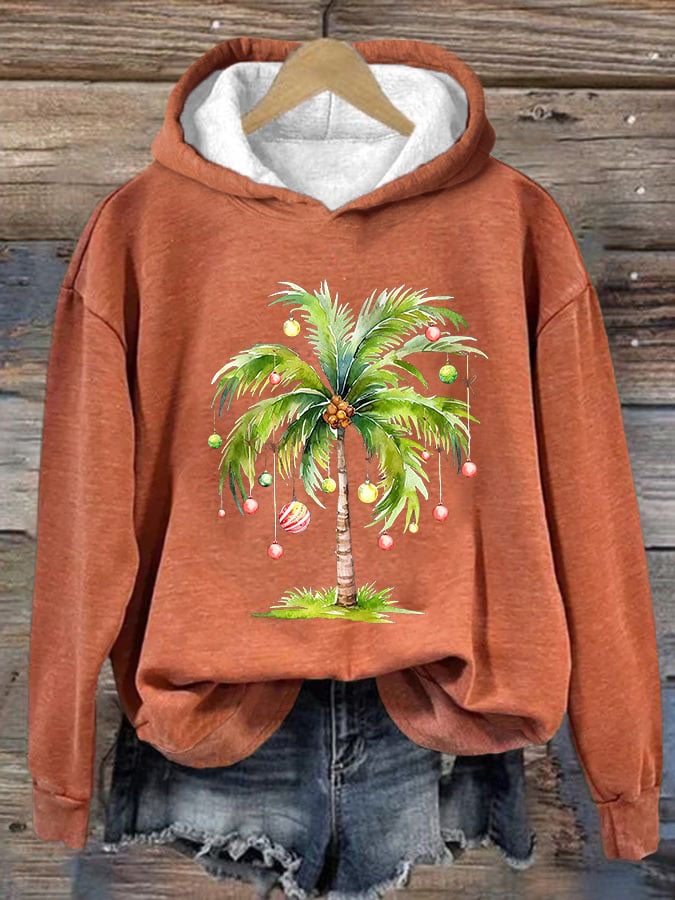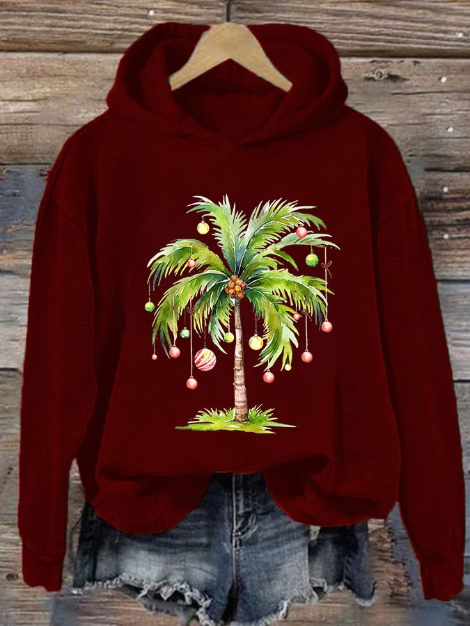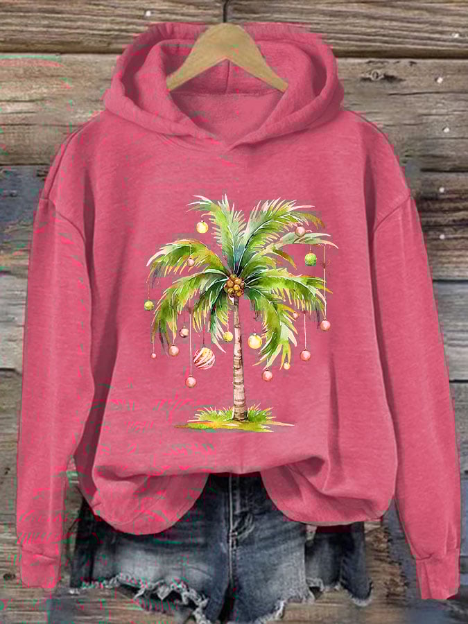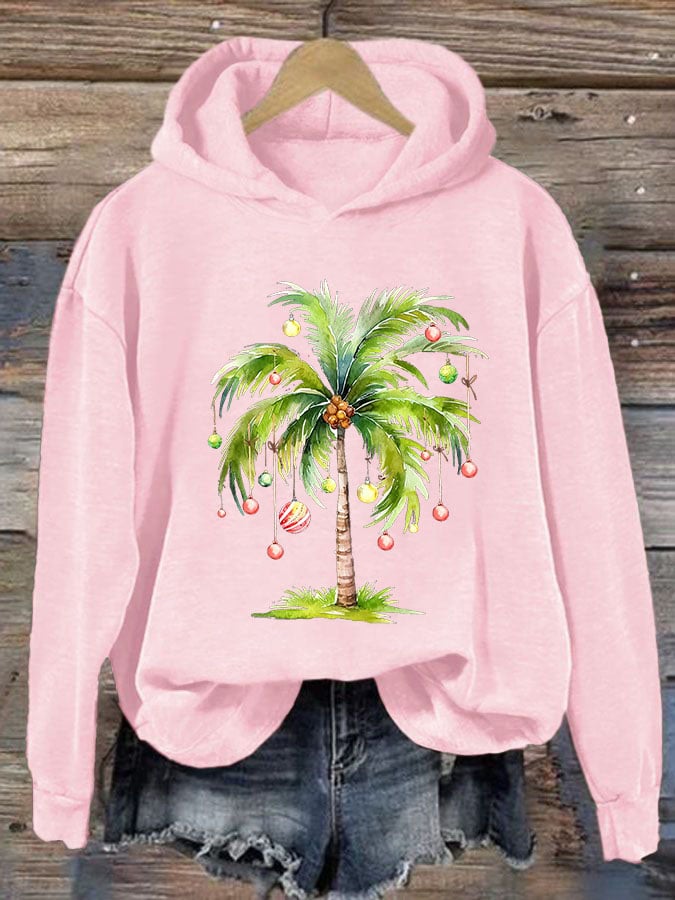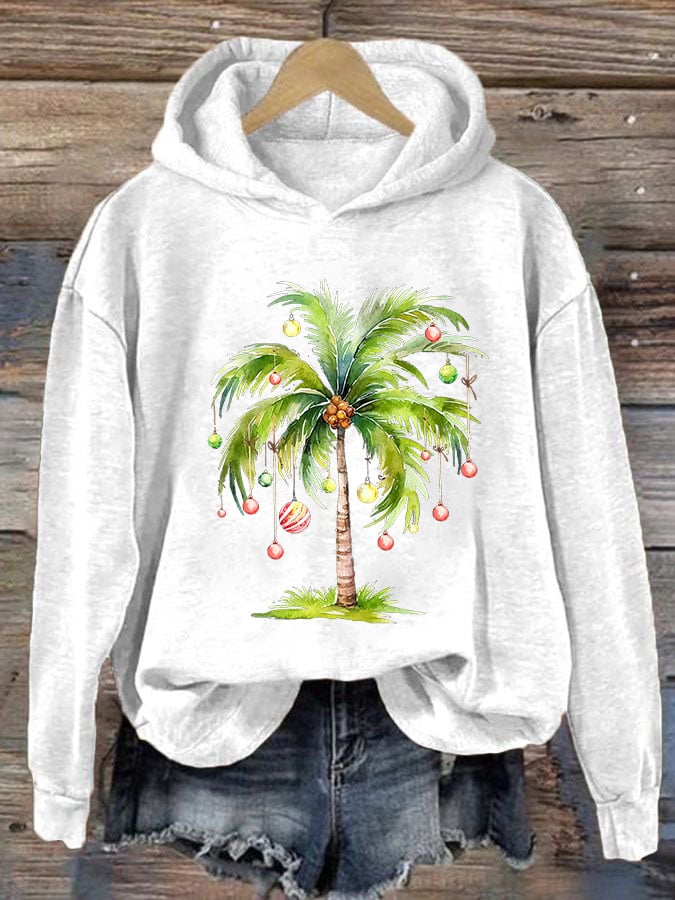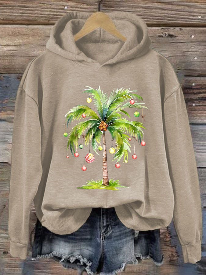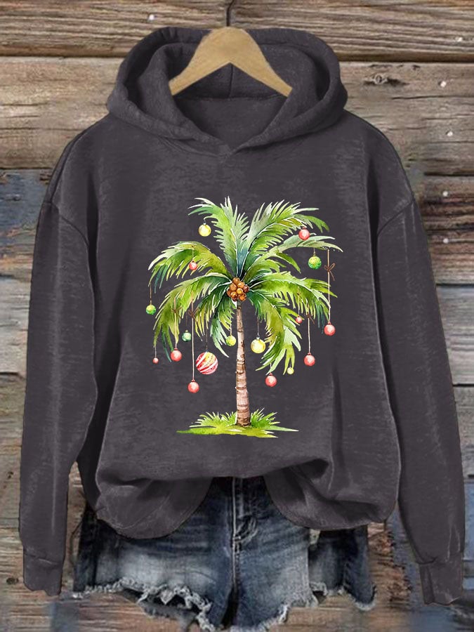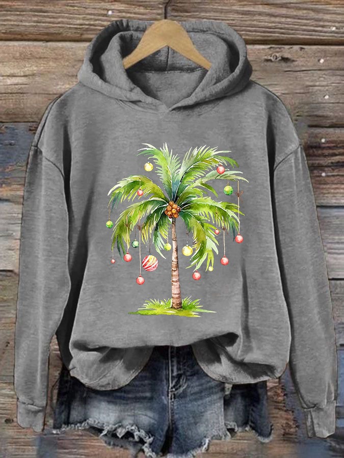 Casual Christmas Palm Tree Printed Long Sleeve Sweatshirt