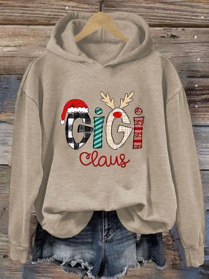Casual Gigi Claus Printed Long Sleeve Sweatshirt