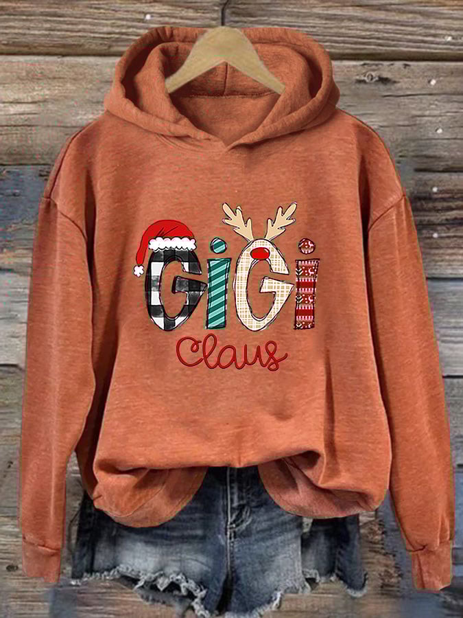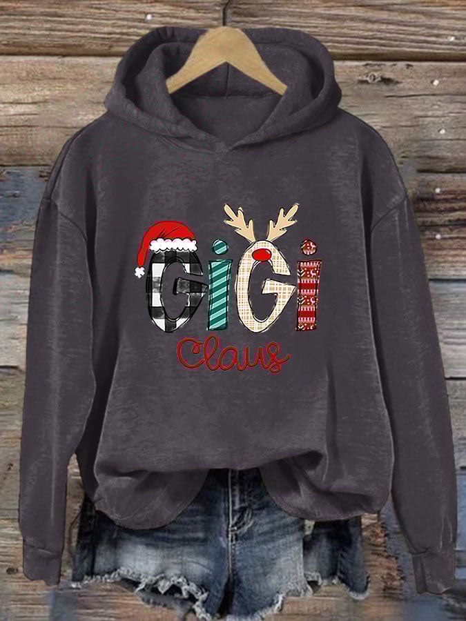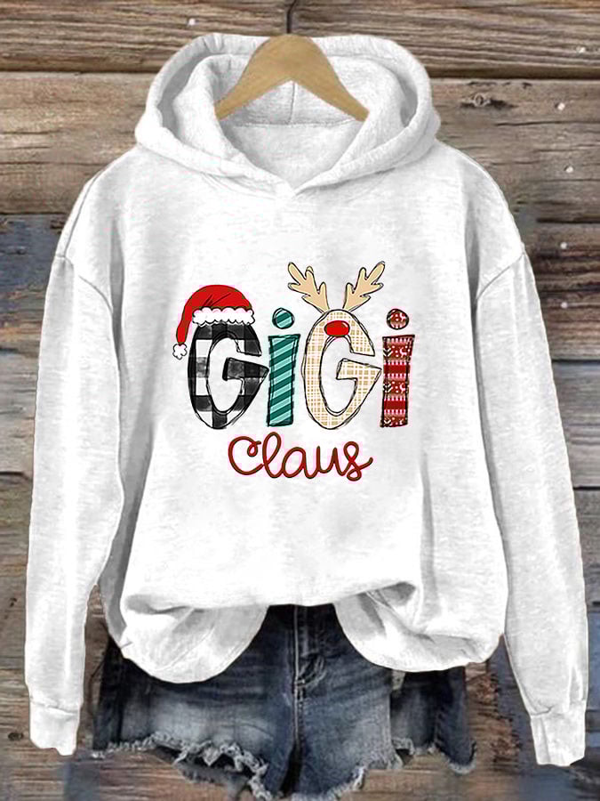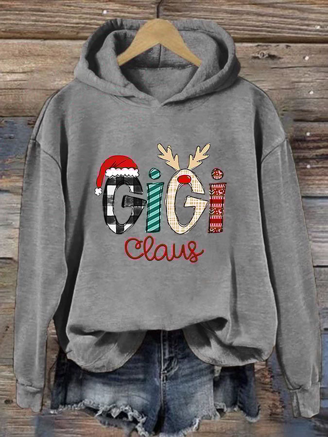 Casual Gigi Claus Printed Long Sleeve Sweatshirt