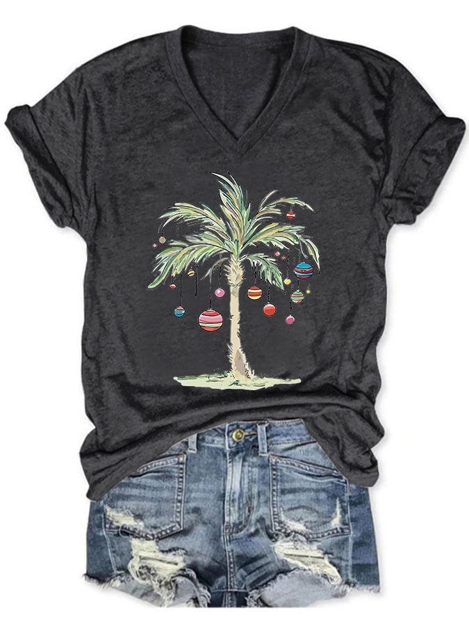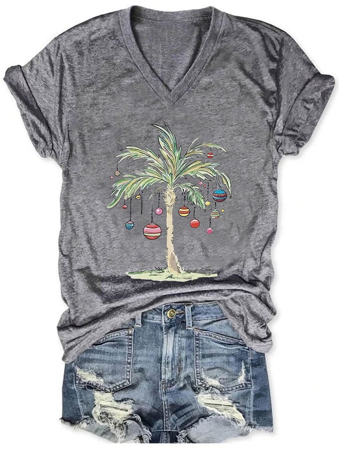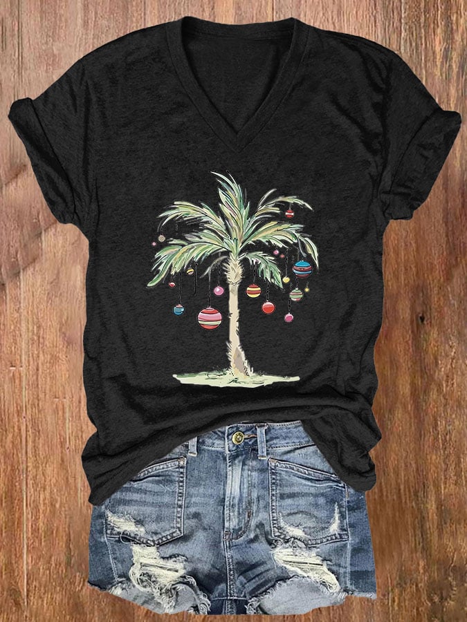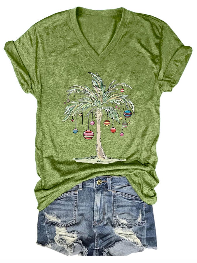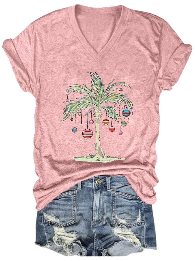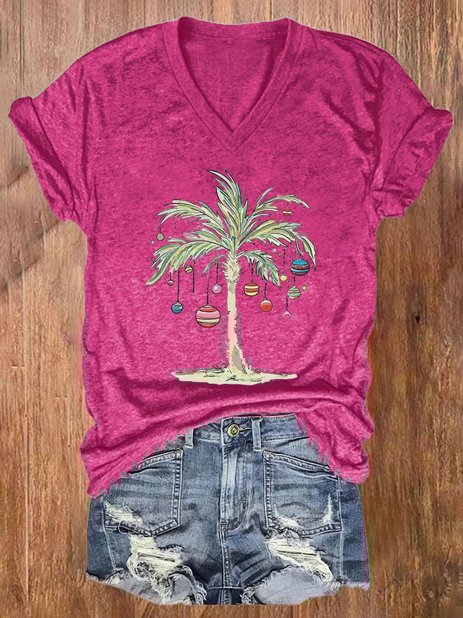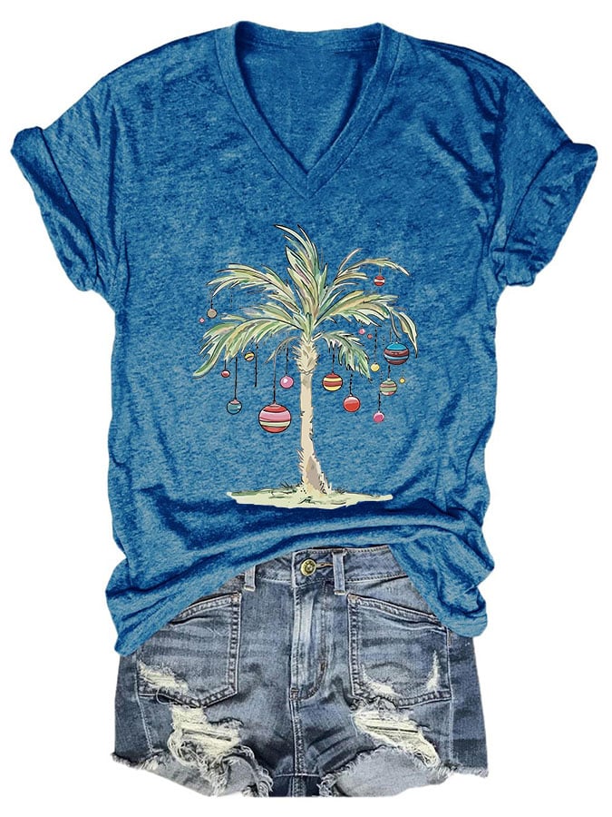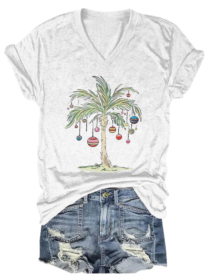 Casual Merry Christmas From Coconut Tree Printed Short Sleeve T-Shirt