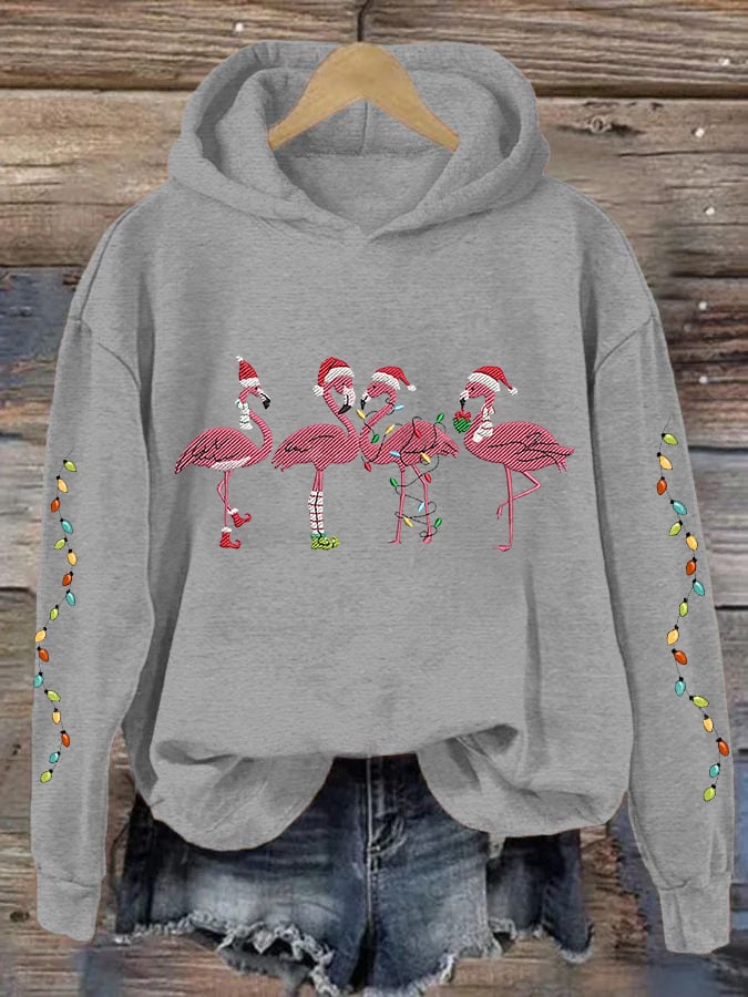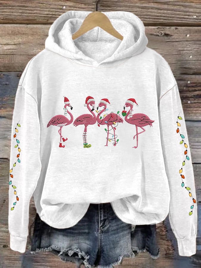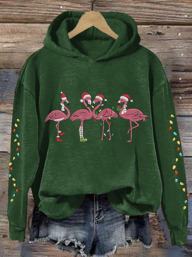 Christmas Colorful Lights Flamingo Holiday Casual Hoodie