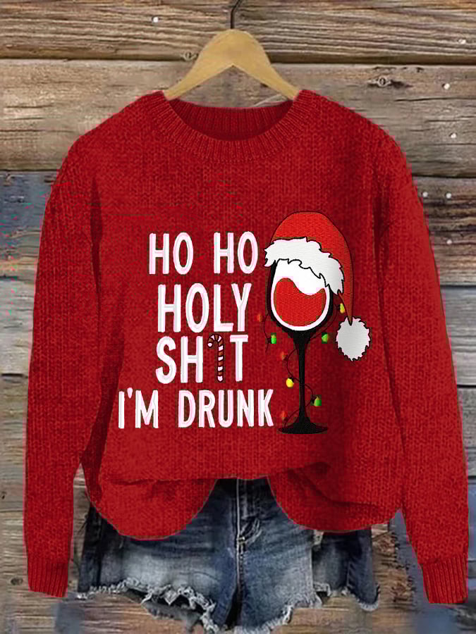 Christmas Ho Ho Holy Sh*T I'M Drunk Print Crew Neck Sweatshirt