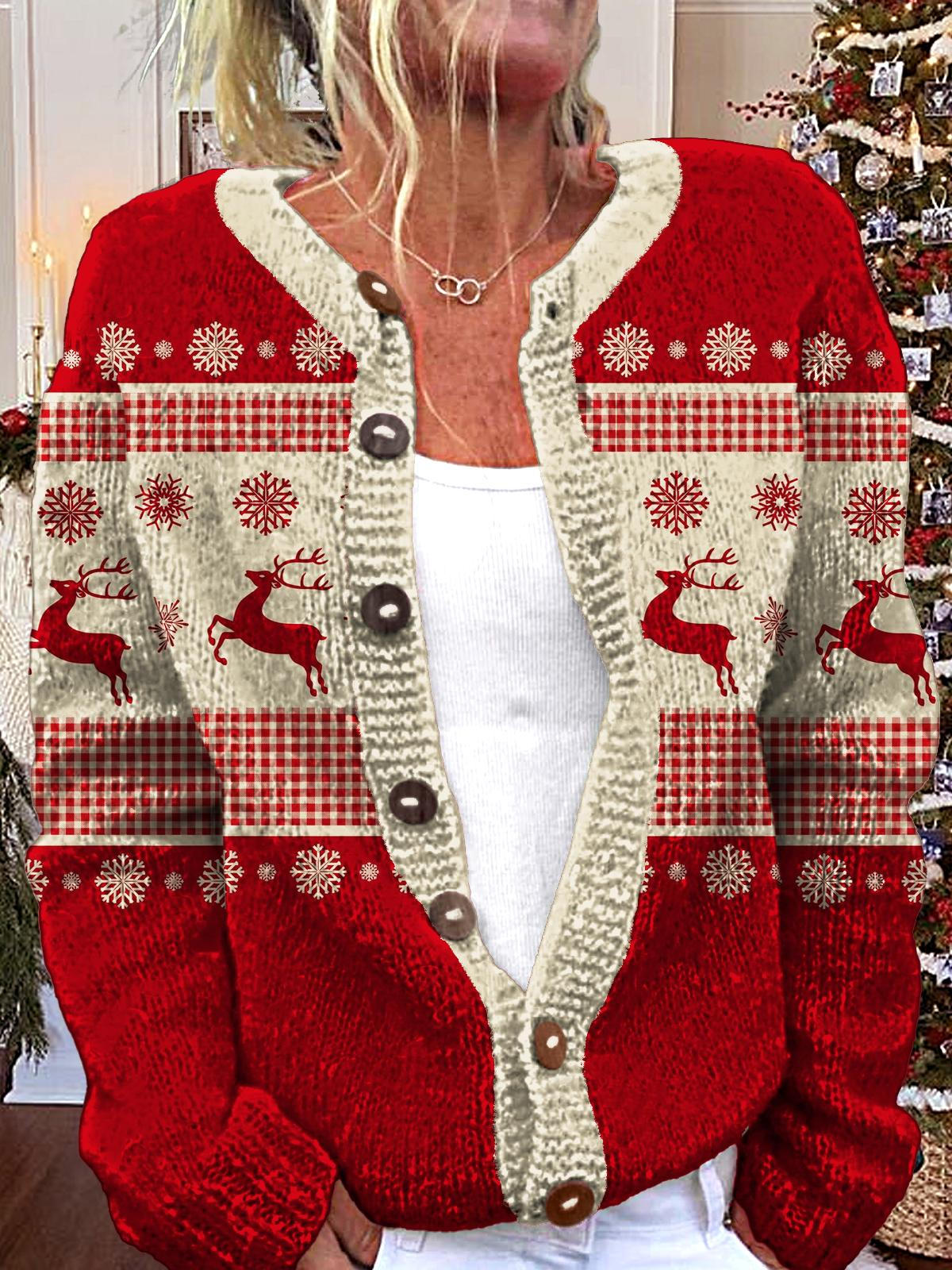 Christmas Reindeer Round Neck Long Sleeve Cardigan