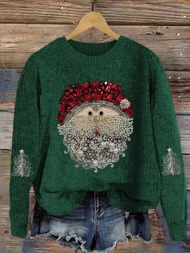 Women's Christmas Santa Claus Jewel Art Crew Neck Sweatshirt