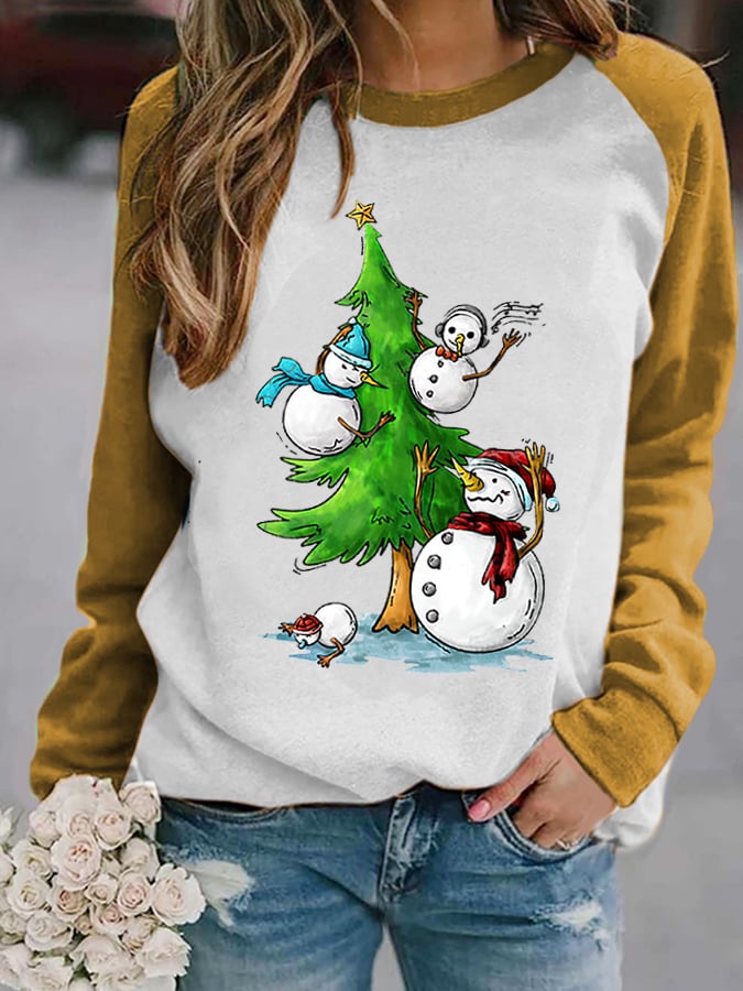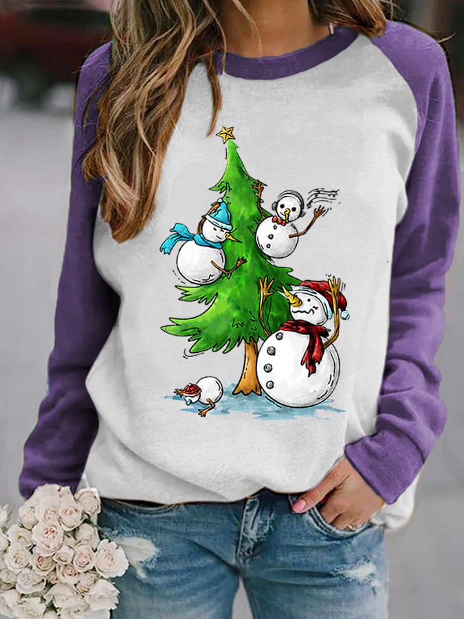 Christmas Tree Snowman Print Christmas Sweatshirt