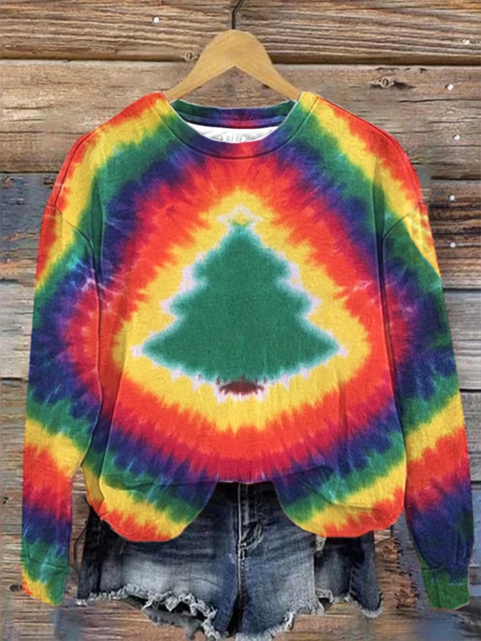 Christmas tree tie-dye print sweatshirt