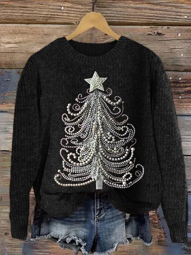 Women's Classy Christmas Tree Pearl Art Crew Neck Sweatshirt