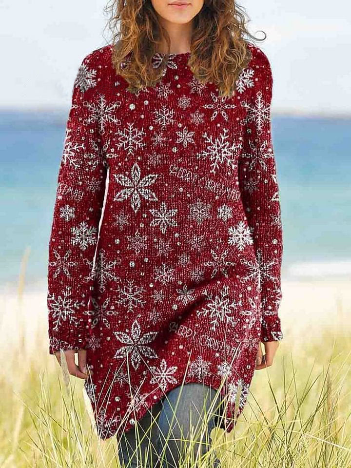 Crew Neck Christmas Graphic Print Casual Knit Sweater Dress