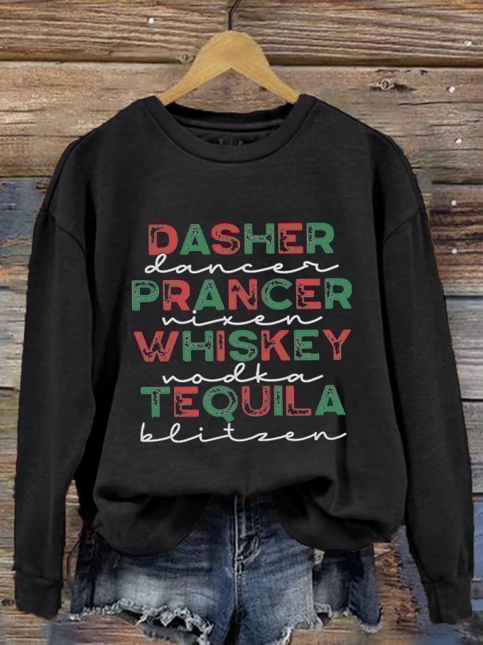 Funny Christmas Dasher Dancer Prancer Vixen Comet Cupid Donner Blitzen Rudolphr Printed Sweatshirt