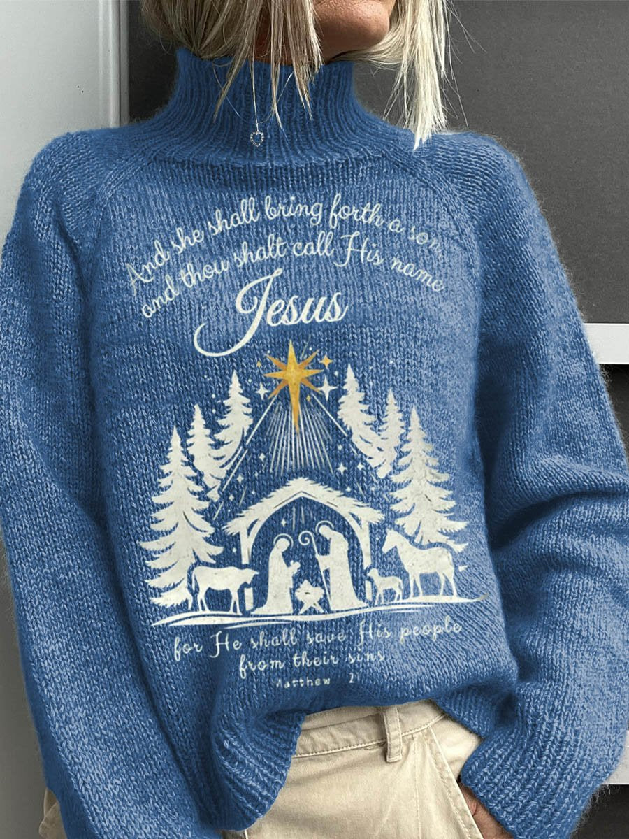 Lovely Birth Of Jesus Christmas Pattern Art Print Knit Turtleneck Pullover Sweater