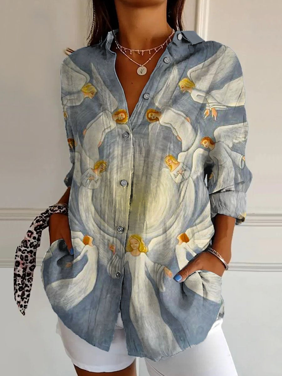 Lovely Christmas Angel Art Print Casual Cotton Shirt