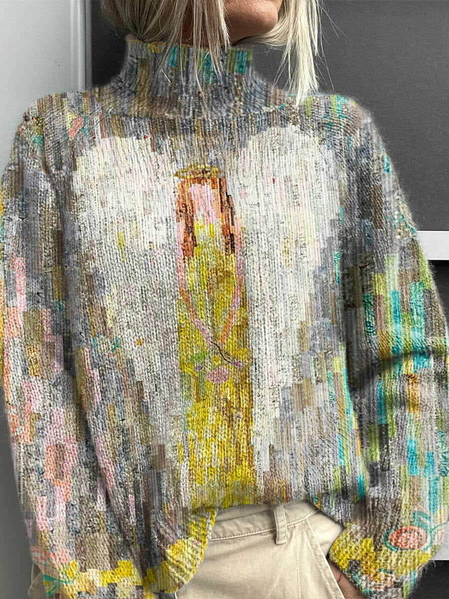 Lovely Christmas Angel Art Print Knit Turtleneck Pullover Sweater